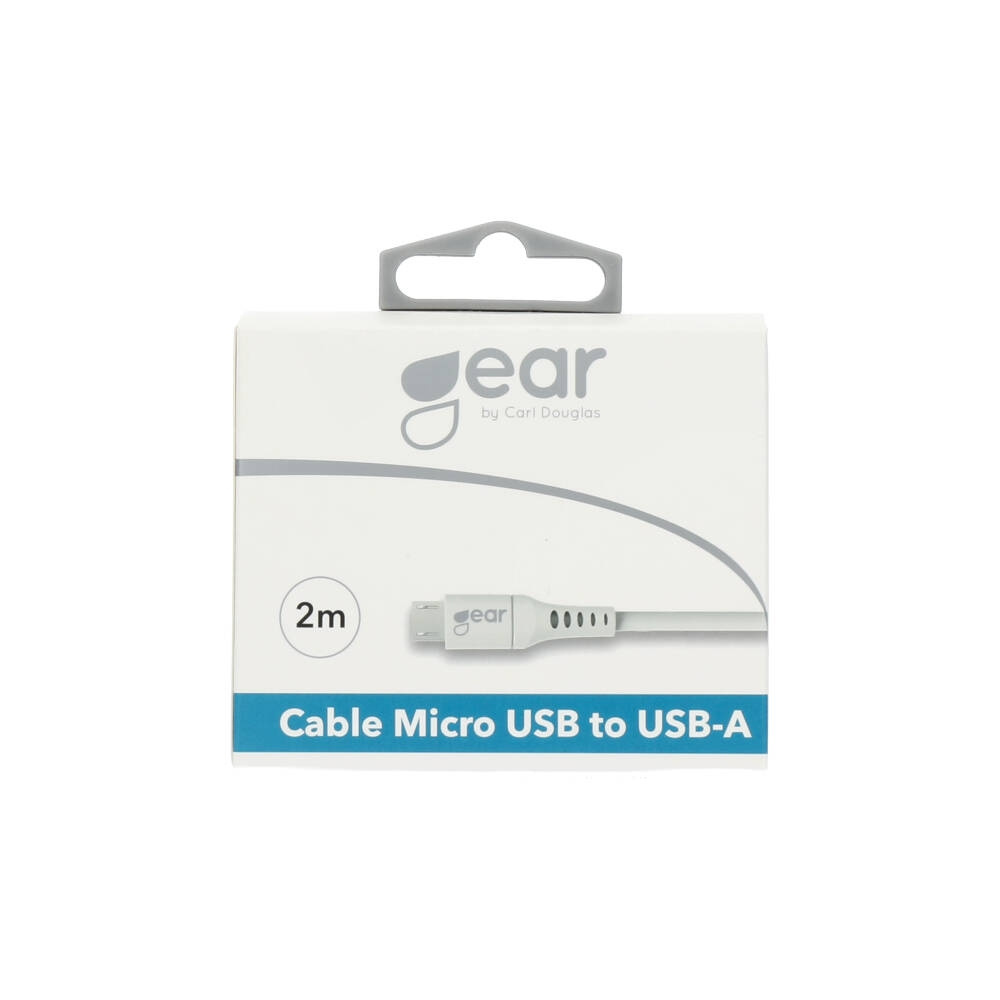 Pyöreä ja valkoinen lataus- ja synkronointikaapeli USB-A-mikro-USB:hen