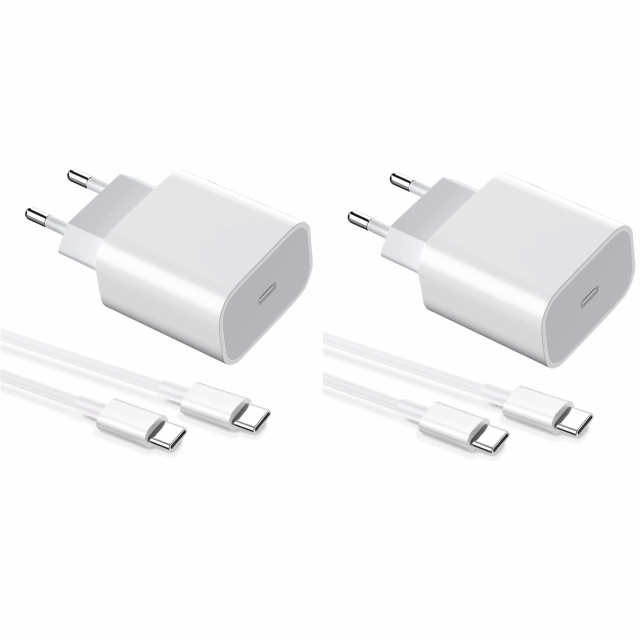 Onko laturi taas kadonnut jäljettömiin? Tässä paketissa saat 2 x 20W seinälaturia USB-C-ulostulolla ja 2 x USB-C USB-C:stä USB-C:hen 1 metrin kaapelit. Ota yksi mukaan töihin, asuntovaunuun, yksi jokaisen lapsen huoneeseen, kyllä, niitä tarvitaan kaikkialla!