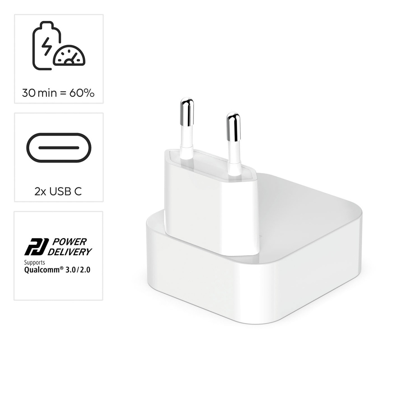 Maksimaalisen yhteensopivuuden ansiosta tämä laturi soveltuu älypuhelimiin, tabletteihin ja virtalähteisiin ja tukee sekä Power Delivery- että Qualcomm Quick Charge 2.0/3.0 -tekniikoita. Siinä on myös akkua säästävä lataus, joka pidentää laitteidesi käyttöikää. Älykäs piirisarja varmistaa turvallisen latauksen suojaamalla ylikuormitukselta, ylivirralta ja oikosululta sekä tarjoamalla lämpötilasuojauksen.