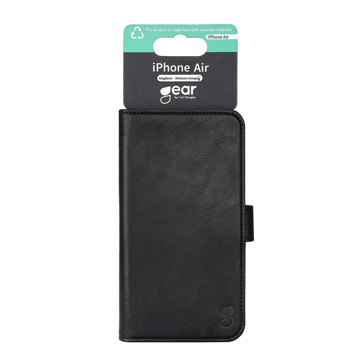 Kierrätetystä keinonahasta valmistettu puhelinkuori, joka suojaa puhelintasi, tukee MagSafe-latausta ja sisältää taskut pankkikorteille, ajokortille ja seteleille.