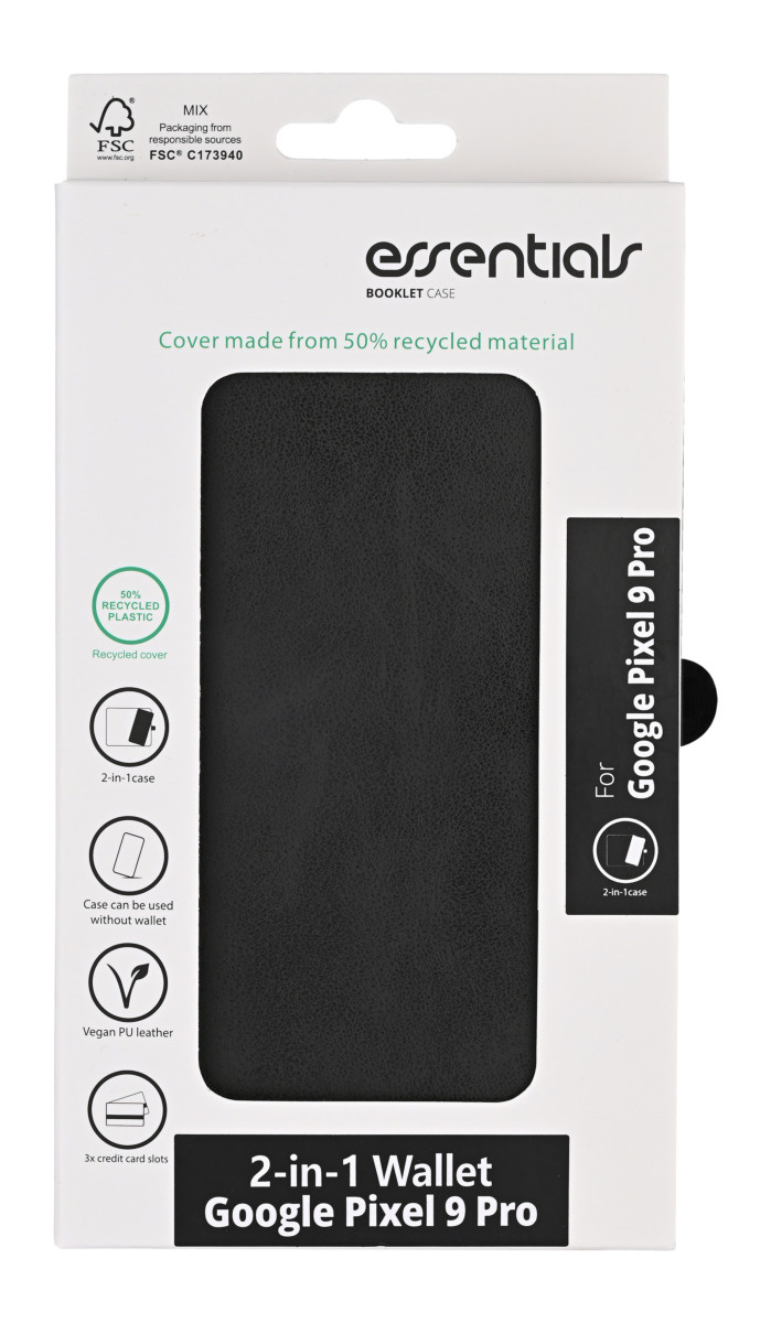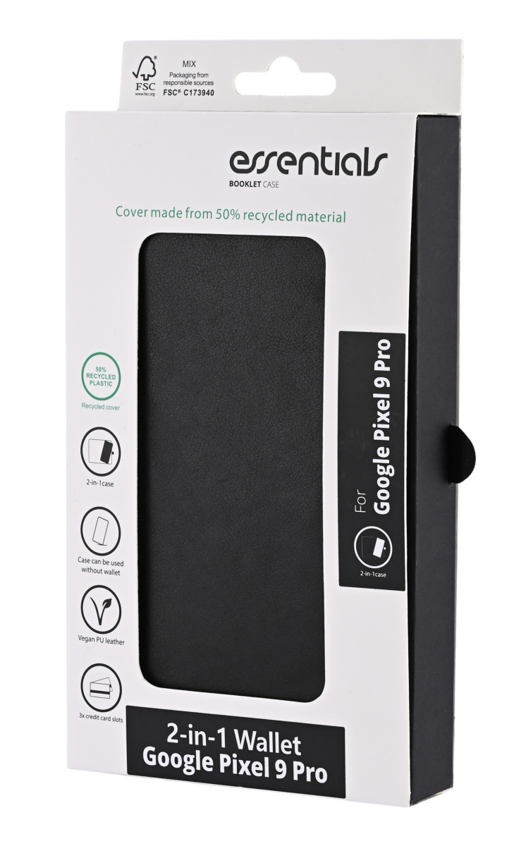 Essentials Google Pixel 9 Pro PU wallet, detachable, 3 cards, black