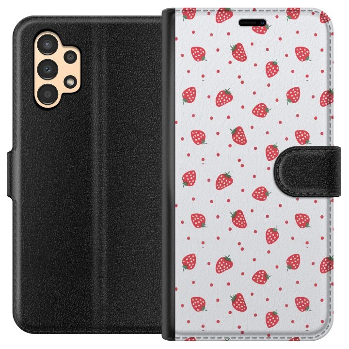 Lompakkokotelo Samsung Galaxy A13-laitteelle, jossa on Mansikat kuvio
