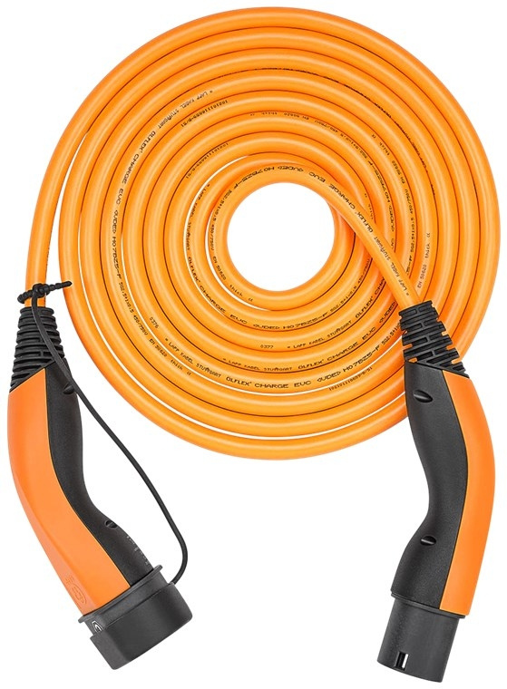 - Oljebeständig och längsgående vattentät laddkabel för elbilar med högt fuktskydd enligt skyddsklass IP55, driftstemperatur -40 °C till 50 °C