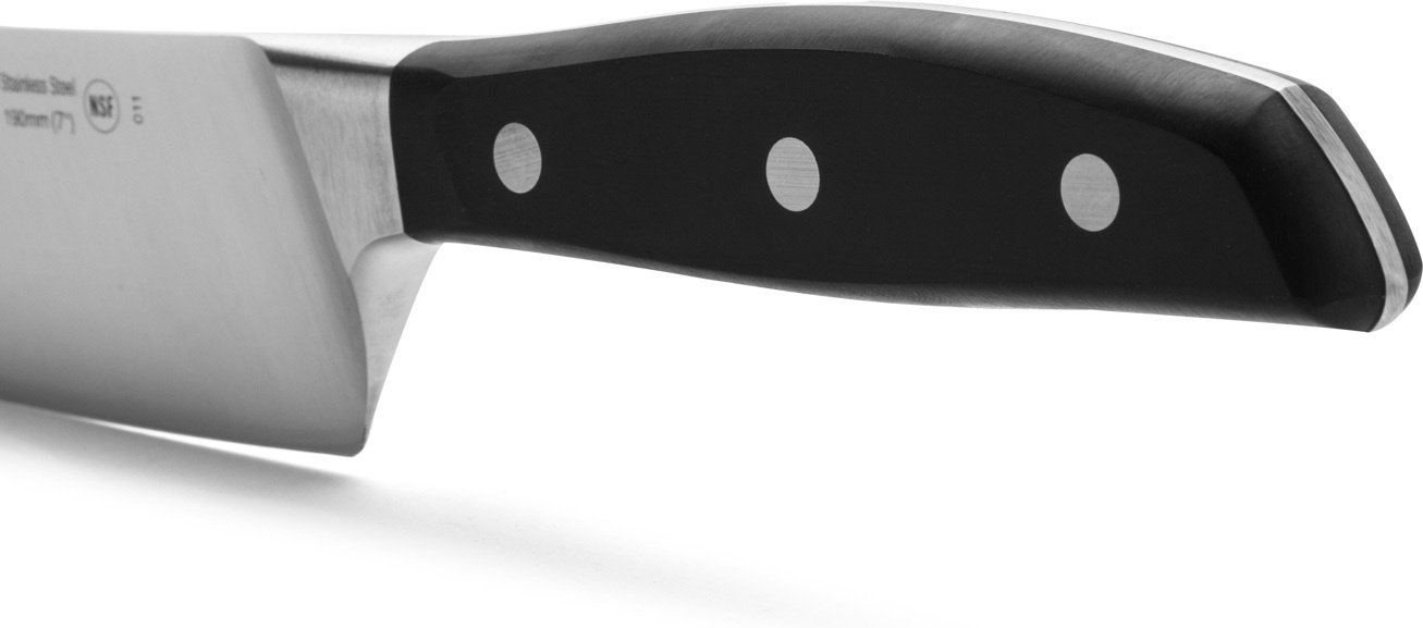 Laadukas taottu kokkiveitsi 19cm pitkällä terällä, hyvin keittiön yleisveitseksi soveltuva veitsi. Veitsi on saanut inspiraatiota japanilaisista santoku- ja kiritsukeveitsistä. Taotussa terässä on kuitenkin keinuvuutta, joten sillä pystyy leikkaamaan helposti niin lihaa, kalaa kuin kasviksiakin. Arcos veitset ovat loistavan hinta-laatusuhteen omaavia ammattitason työvälineitä. Vuodesta 1745 espanjalaisella veitsentaontaperinteellä Albaceten maakunnassa valmistetut veitset ovat taottua Nitrum- ruostumatonta terästä, jonka kovuus Rockwellin asteikolla on C56. Teräs valmistetaan myös Espanjassa.