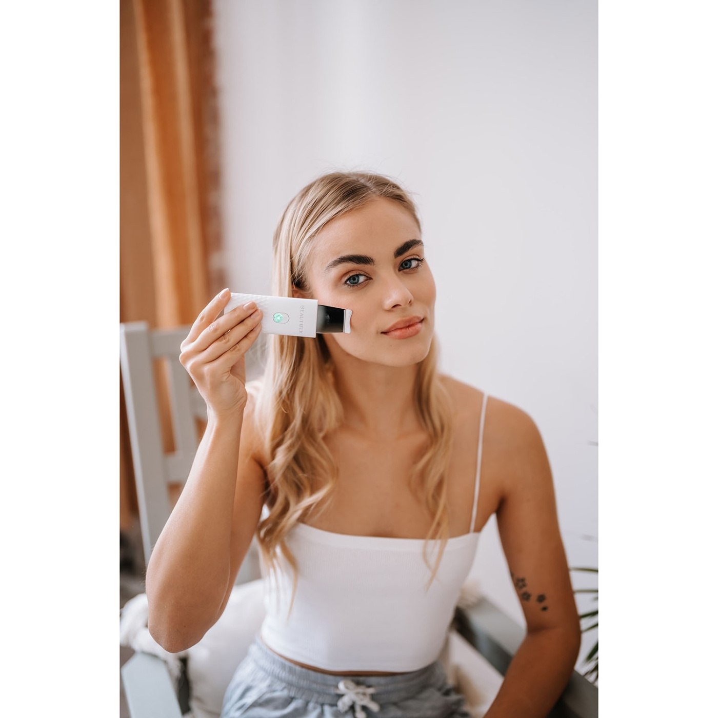 Tämä Beautiflyn kompakti kuorintalaite tarjoaa ultraäänikavitaatiota ja LED-valohoitoa.