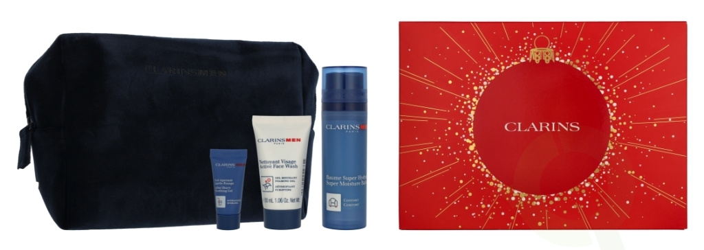 Clarins Men Set 83 ml Super Moisture Balm 50 ml / Active Face Wash 30 ml / Sample Shave Oil 3 ml / Men Pouch