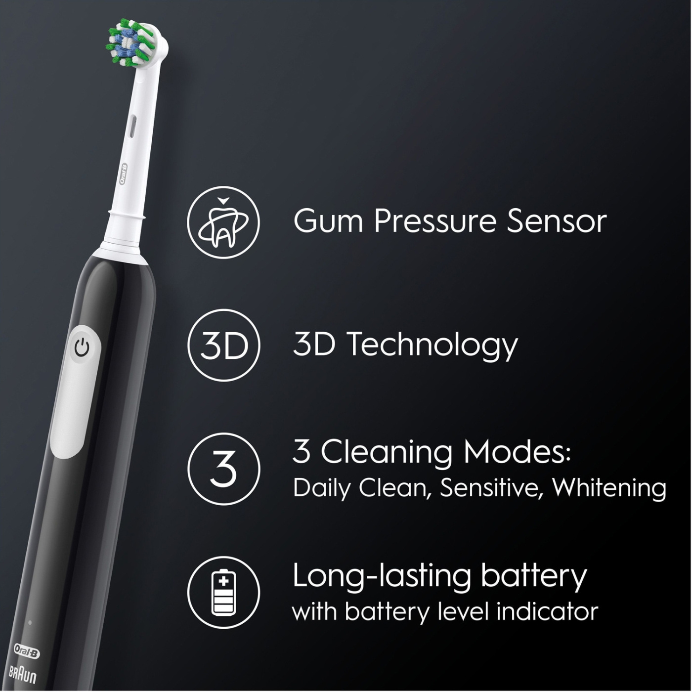 - Oral-B:s unika 3D-rengöringsteknik: oscillerar, roterar och pulserar för upp till 100 % mer plackborttagning även på svåråtkomliga områden jämfört med en manuell tandborste