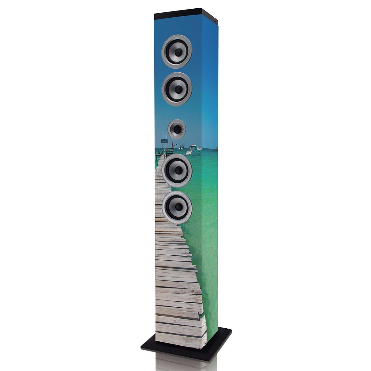 USB- ja SD-tulon lisäksi kaiuttimessa on myös AUX-tulo. Tässä Icesin IBT-6-kaiuttimessa on Saksan lippu. Harrastajalle tämä kaiutin on ehdoton hankinta. Tämä kaiutin on saatavana kuudella eri painatuksella: Deutschland, Zebra, Sea, New York Liberty, Roma ja Tags.