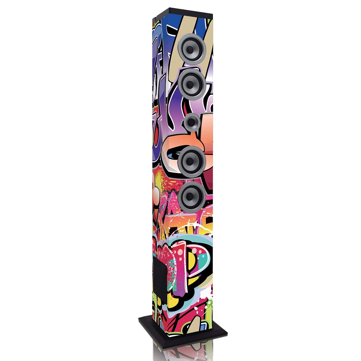 USB- ja SD-tulon lisäksi kaiuttimessa on myös AUX-tulo. Tässä Icesin IBT-6-kaiuttimessa on Saksan lippu. Harrastajalle tämä kaiutin on ehdoton hankinta. Tämä kaiutin on saatavana kuudella eri painatuksella: Deutschland, Zebra, Sea, New York Liberty, Roma ja Tags.