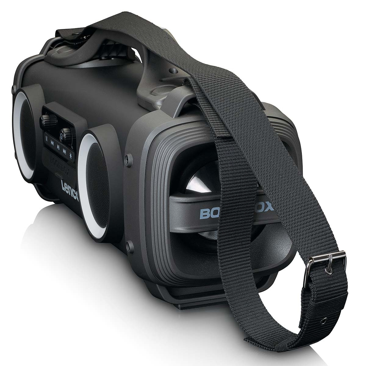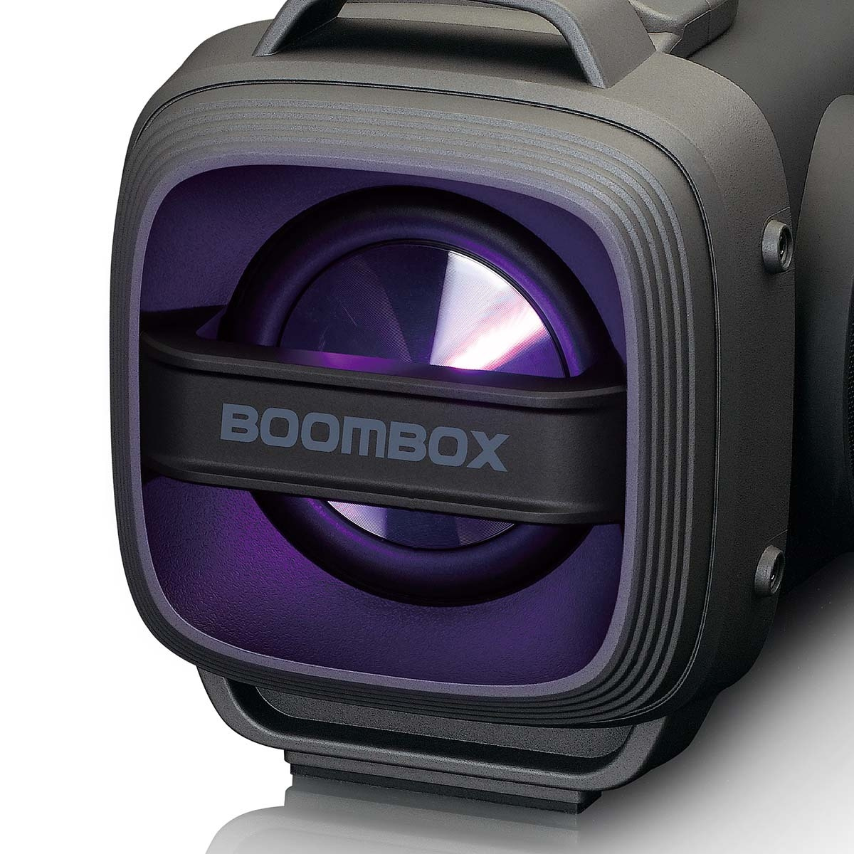 SPR-200BK sopii täydellisesti juhliin sisätiloissa tai ulkona, sillä tässä kannettavassa boomboxissa on ladattava akku, joten voit helposti ottaa sen mukaan mihin tahansa. Muita keskeisiä ominaisuuksia ovat äänen taajuuskorjain, basson säätö, olkahihna ja valaistustehosteet.