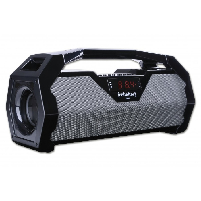 Tehokas kannettava kaiutin osoitteesta Rebeltec, jota ohjataan älypuhelimella tai kaiuttimen sisäänrakennetuilla painikkeilla. Kaiuttimessa on sisäänrakennettu mikrofoni ja se voi toimia kaiutinpuhelimena, jonka avulla voit vastata saapuviin puheluihin, kun se on yhdistetty älypuhelimeen.