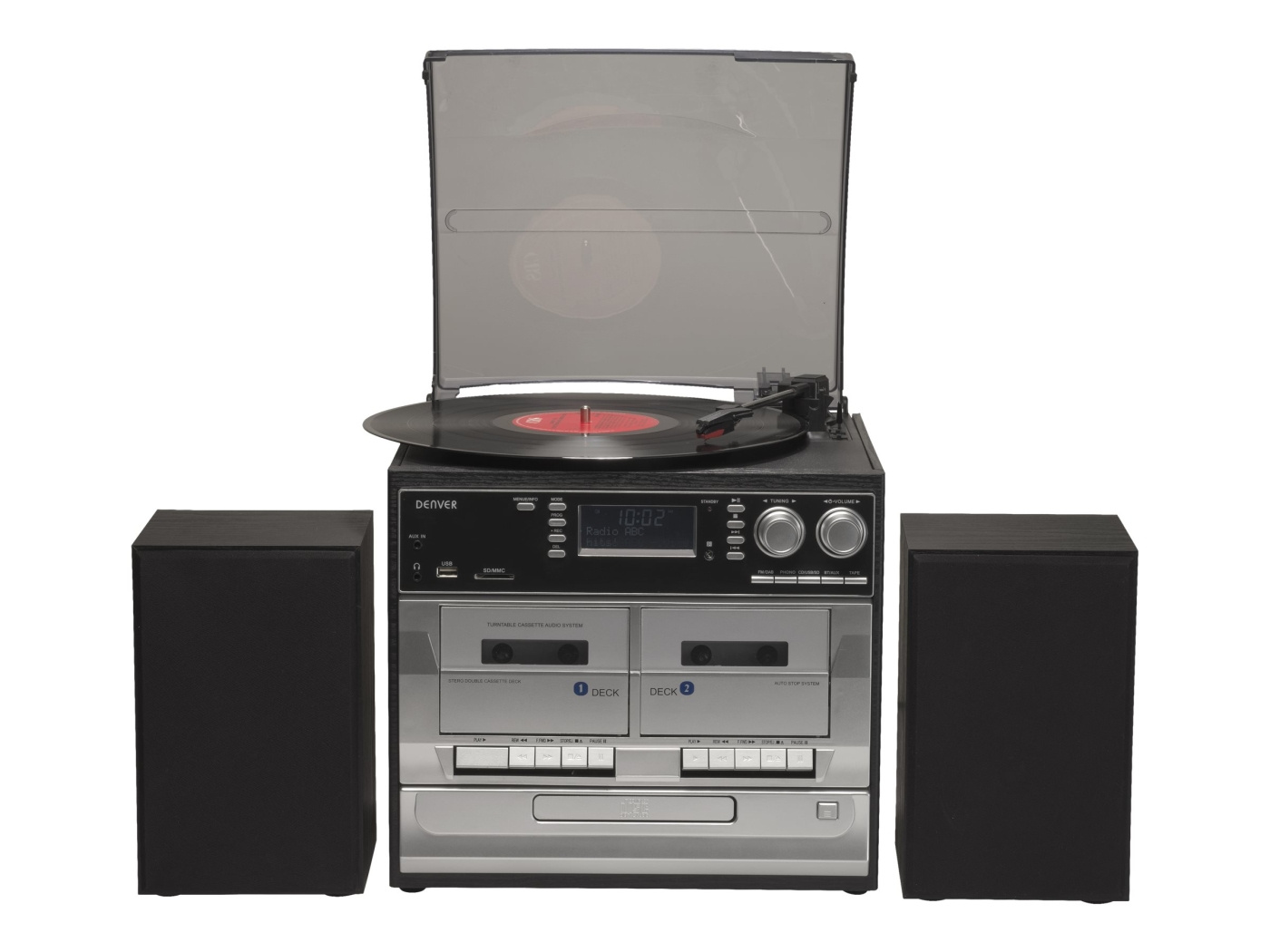 Denver MRD-166 är den ultimata musikstationen med oändliga möjligheter. Denna retroradio är utrustad med DAB+ och har en inbyggd skivspelare! Du kan också lyssna via SD-kortet, den inbyggda CD-spelaren, eller lyssna på de äldre hitsen med kassettspelaren. Med trähögtalarna kan du fylla ditt hem med det varma ljudet av musik på nolltid. Om det inte finns plats för enheten på det ena skåpet kan du också koppla bort högtalarna och placera dem någon annanstans. Retro skivspelare Skivspelare var tidigare extremt populära tack vare deras unika ljud. Senare kom CD-spelaren och trenden avtog. Under tiden är skivspelaren tillbaka! Populariteten ökar enormt och dessutom är MRD-166 från Denver en skivspelare och CD-spelare i ett!DAB+ RadioDAB+, är efterföljaren till DAB-radio och ger många förbättringar, såsom ett bredare utbud av kanaler, en mer stabil signal och bättre ljudkvalitet. Medan fler och fler AM- och FM-stationer försvinner, växer utbudet av DAB+-stationer.