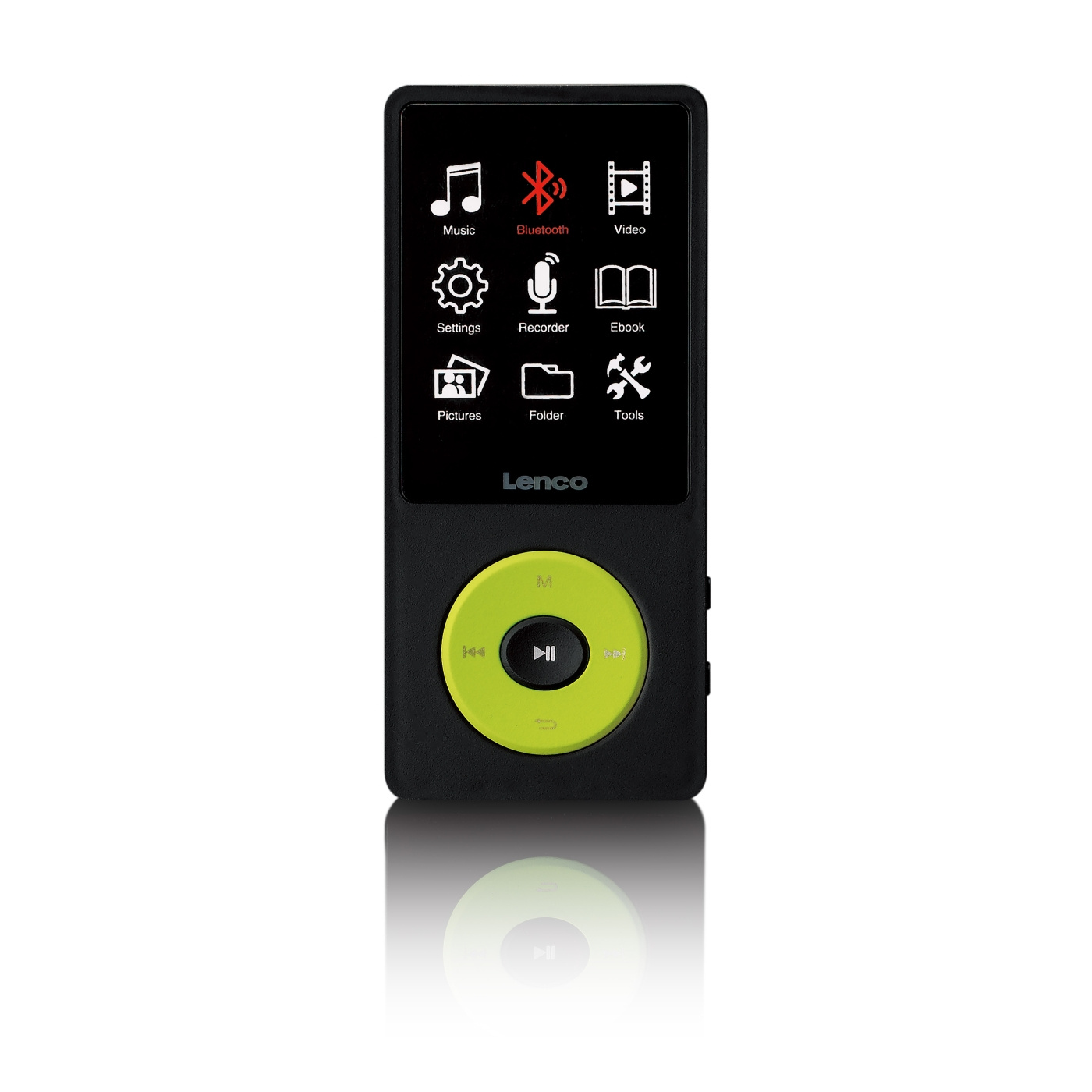 Lenco Xemio-860GN:n mukana toimitetaan USB-kaapeli ja Lenco-kuulokkeet. Lenco Xemio-860 on saatavana kolmessa värissä: musta/harmaa, musta/sininen ja musta/lime.