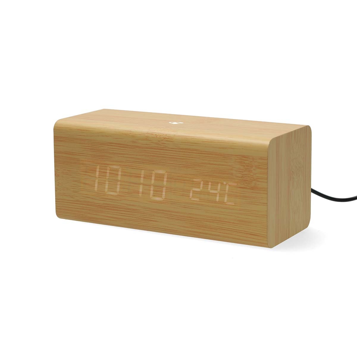 Kompaktin muotoilunsa (163 x 73 x 70 mm) ansiosta kello mahtuu helposti mille tahansa yöpöydälle, hyllylle tai toimistopöydälle, ja se sulautuu saumattomasti moderniin tai minimalistiseen sisustukseen puupinnoitteensa ansiosta.