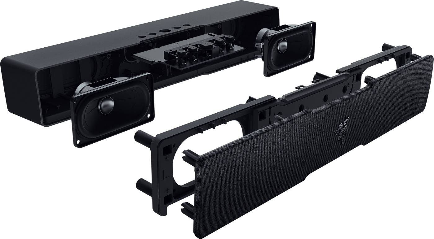 Leviathan V2 X:stä löytyy useita kaiuti-elementtejä, jotka varmistavat terävät ja kirkkaat diskantit sekä syvän ja iskevän basson. Kompaktin kokonsa (40 cm leveä) ansiosta soundbar mahtuu hyvin näytön alle.
