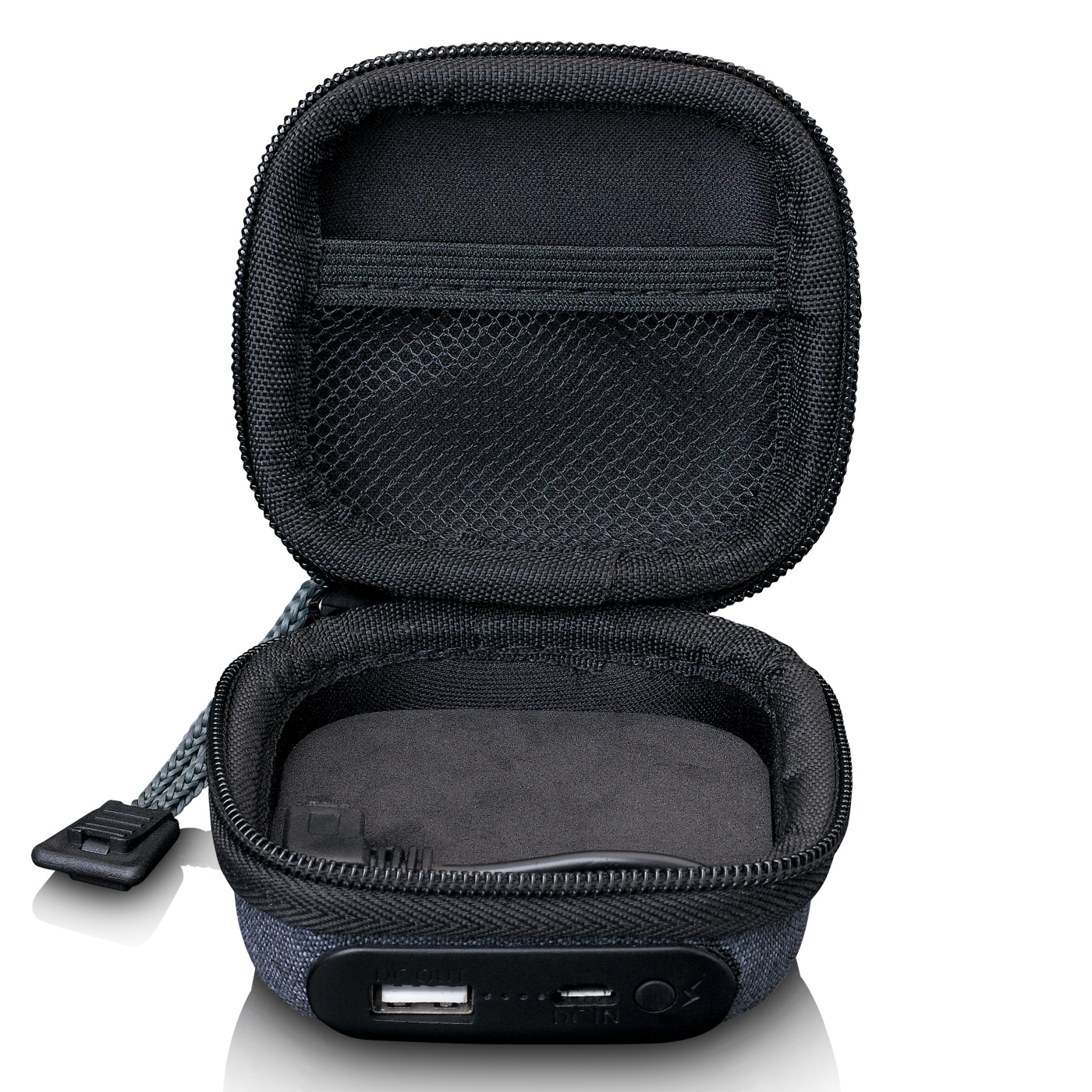 Mutta tämä kotelo on enemmän kuin vain salkku kuulokkeillesi, se on samalla myös virtapankki. Lataa kuulokkeesi salkkuun liitetyn mikro-USB-kaapelin kautta. Energiatilanäytön kautta tiedät tarkalleen, kuinka paljon virtaa kuulokkeissasi on vielä jäljellä.