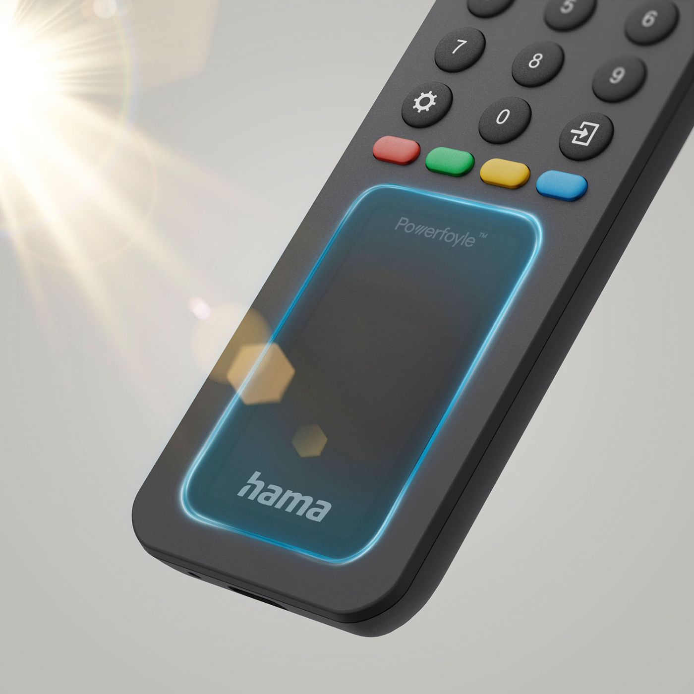 Tämä yleiskaukosäädin Hama on aurinkoenergialla toimiva ja ohjaa jopa kahdeksaa laitetta.