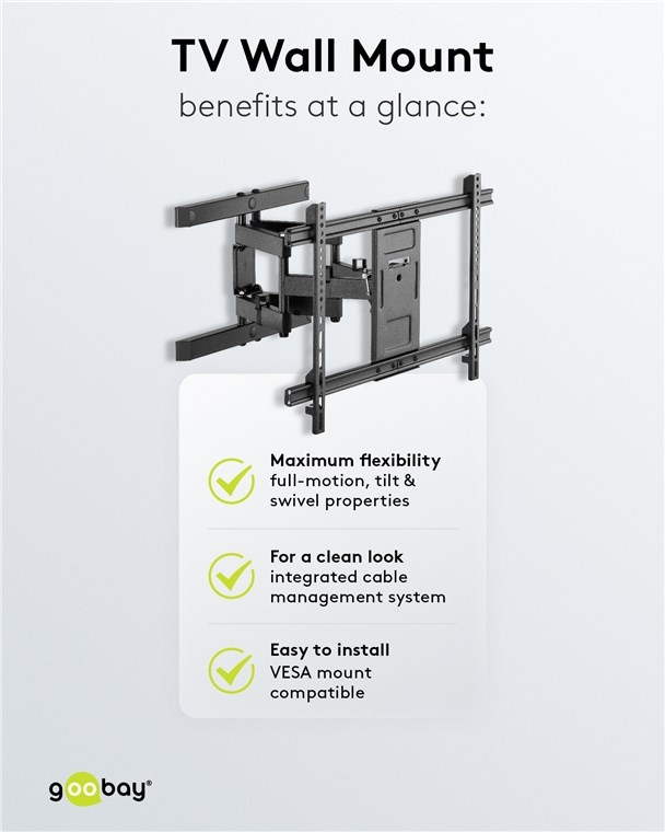 - Lämplig för de flesta platta och böjda tv-apparater av alla vanliga märken (t.ex. Samsung (även QLED och LED), Sony, Philips, LG) och storlekar (t.ex. 40 ", 43", 49 ", 50", 55 ", 58", 65 ")