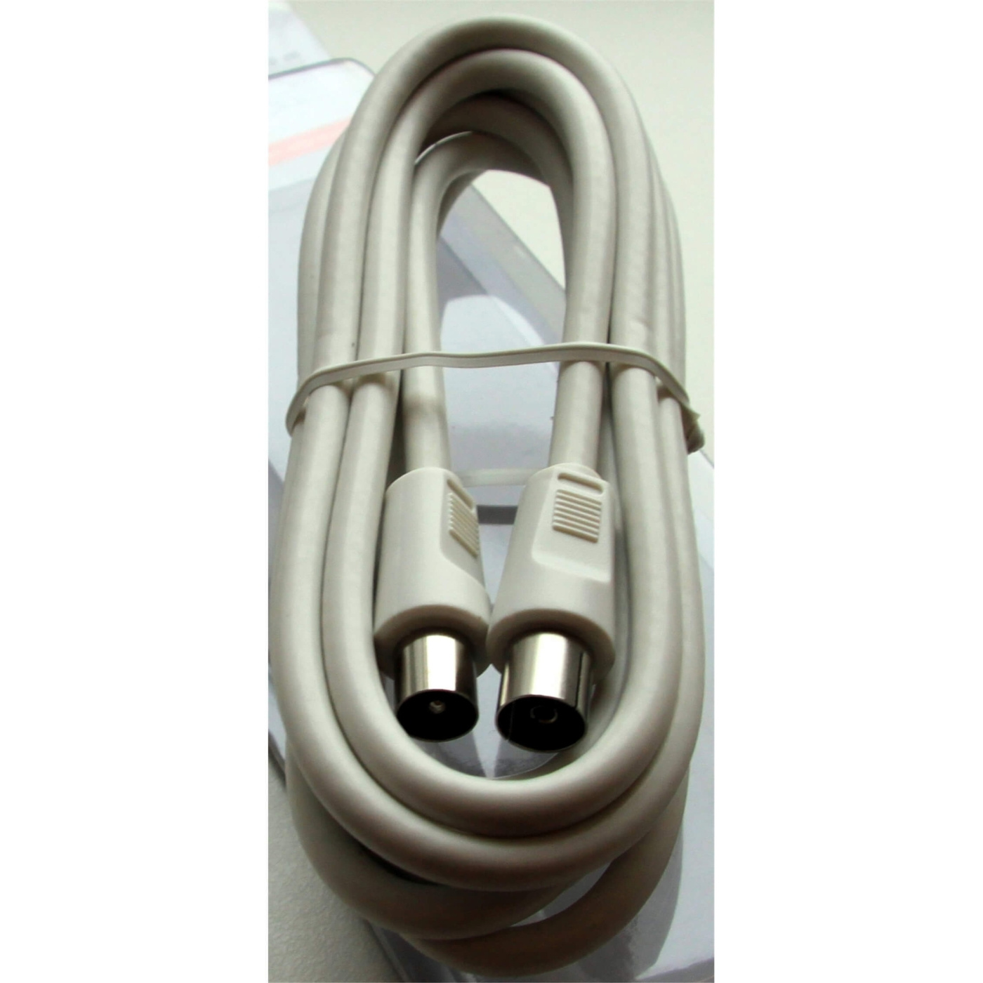 2,5 metrin valkoinen antennijohto IEC-liittimellä (uros/naaras) tv-ja radiosigneelien siirtoon, 75 Ohm. Tuplasuojattu koaksiaalijohto, joka toimii myös jatkojohtona.