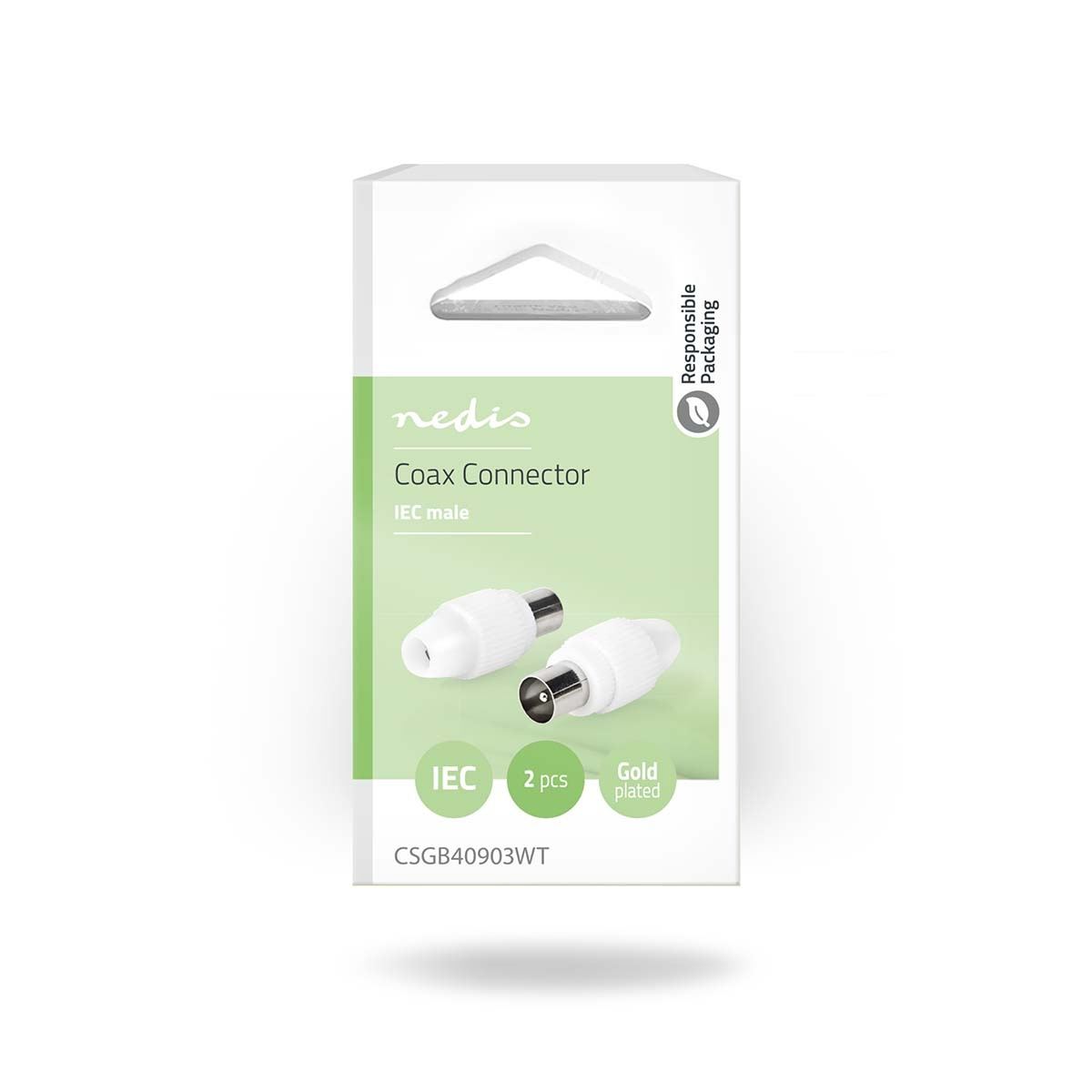 Nedis IEC (Coax) Liitin | Suora | Uros | Niklattu | 75 Ohm | Ruuvi | Kaapelin läpitulomitta: 7.0 mm | Metalli / PVC | Valkoinen | 2 kpl | Laatikko