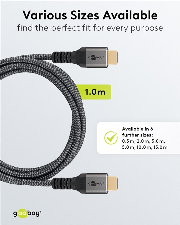 - Den flätade textilmanteln på Goobay 4K-kabeln ger en behaglig känsla och är skonsam mot känsliga ytor
