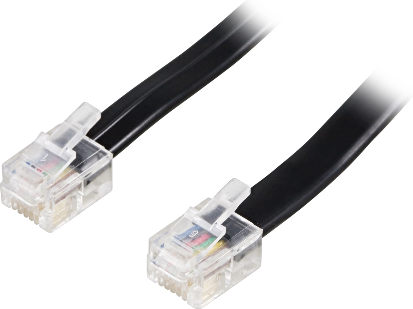 Valmis modulaarikaapeli, jossa 6-pin RJ-liittimet. 6 johdinta. Voidaan käyttää puhelinjohtona.