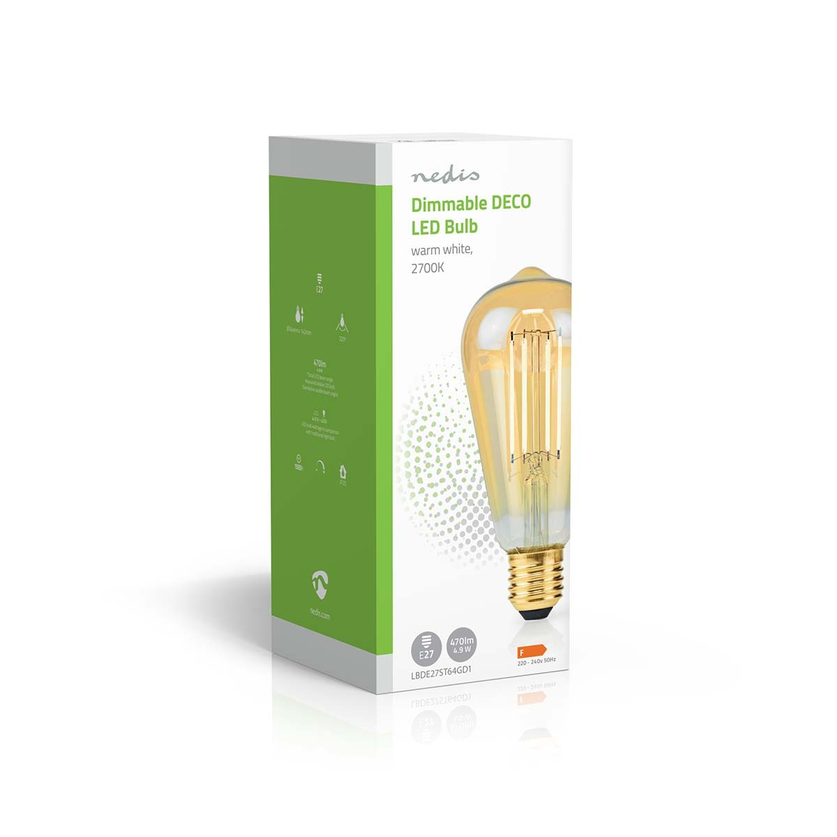 Nedis LED Filamenttilamppu E27 | ST64 | 4.9 W | 470 lm | 2100 K | Himmennettävä | Erittäin lämmin valkoinen | Retrotyylinen | 1 kpl