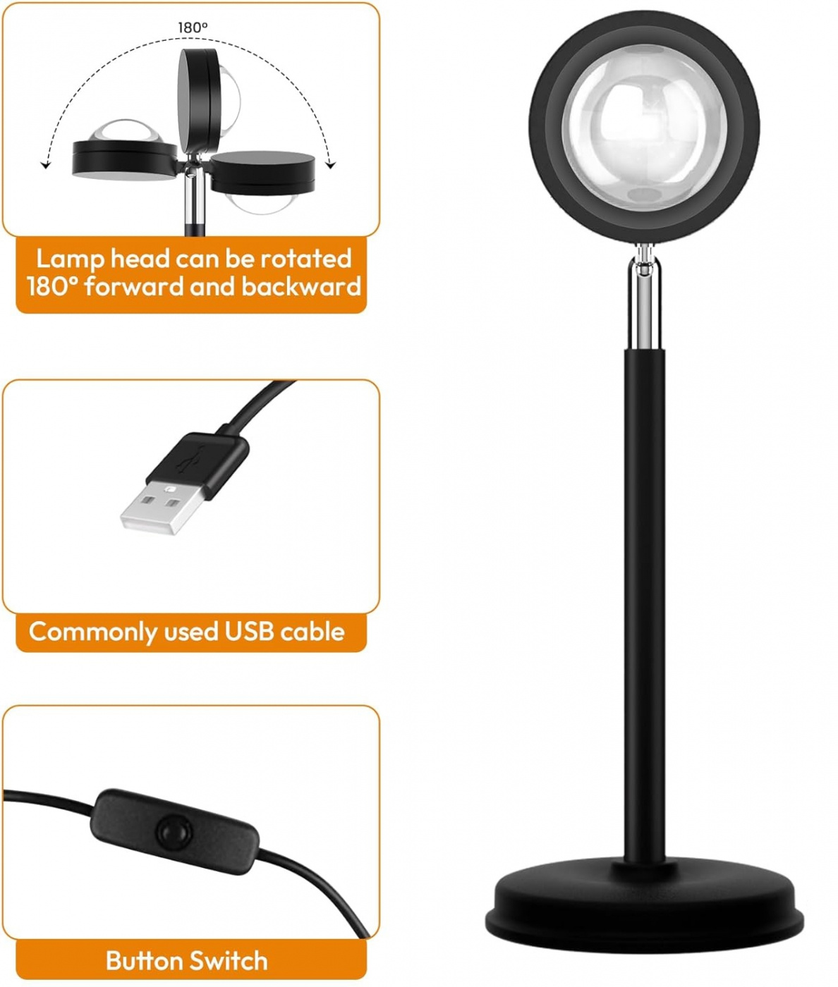 Koe auringonlaskujen taika milloin tahansa. Tämä lamppu, joka on suunniteltu muuttamaan mikä tahansa huone rauhoittavaksi keidaksena, antaa lämpimän, kultaisen hehkun, joka jäljittelee täydellisesti aidon auringonlaskun upeita värejä. Täydellinen rentouttavan ilmapiirin luomiseen, ainutlaatuisen sisustusdetaljin luomiseen huoneeseen tai valokuvakokemuksen parantamiseen.