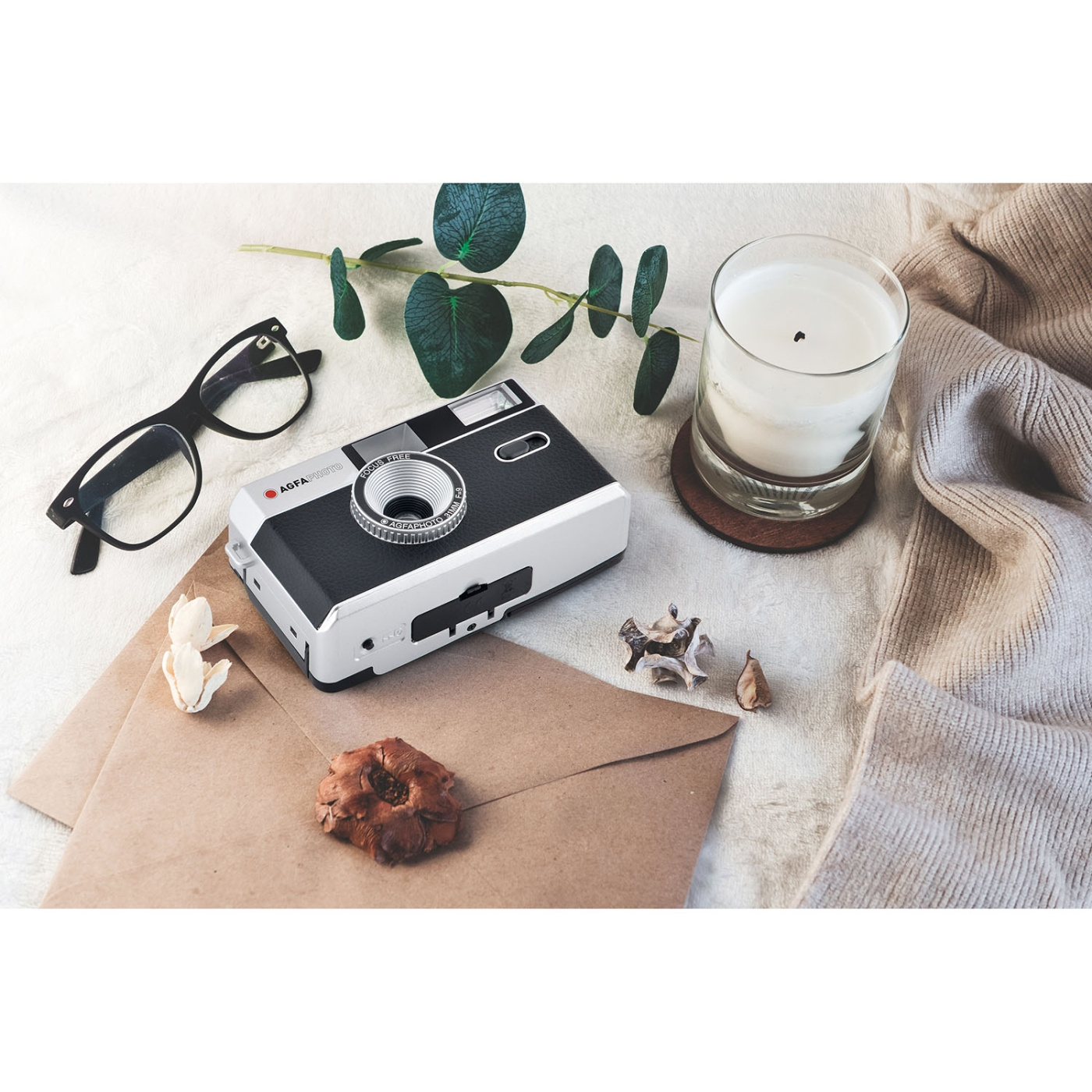 Tämä AGFAPHOTOn 35mm:n filmikamera herättää filmivalokuvauksen taikuuden henkiin retromuotoilullaan ja nykyaikaisilla ominaisuuksillaan. Se on yhteensopiva minkä tahansa 35mm:n väri- tai yksivärisen filmirullan kanssa, joten se sopii täydellisesti niille, jotka haluavat tutustua filmikuvauksen maailmaan. Kameran trendikäs tyyli hurmaa varmasti sekä uudet että kokeneet valokuvaajat.