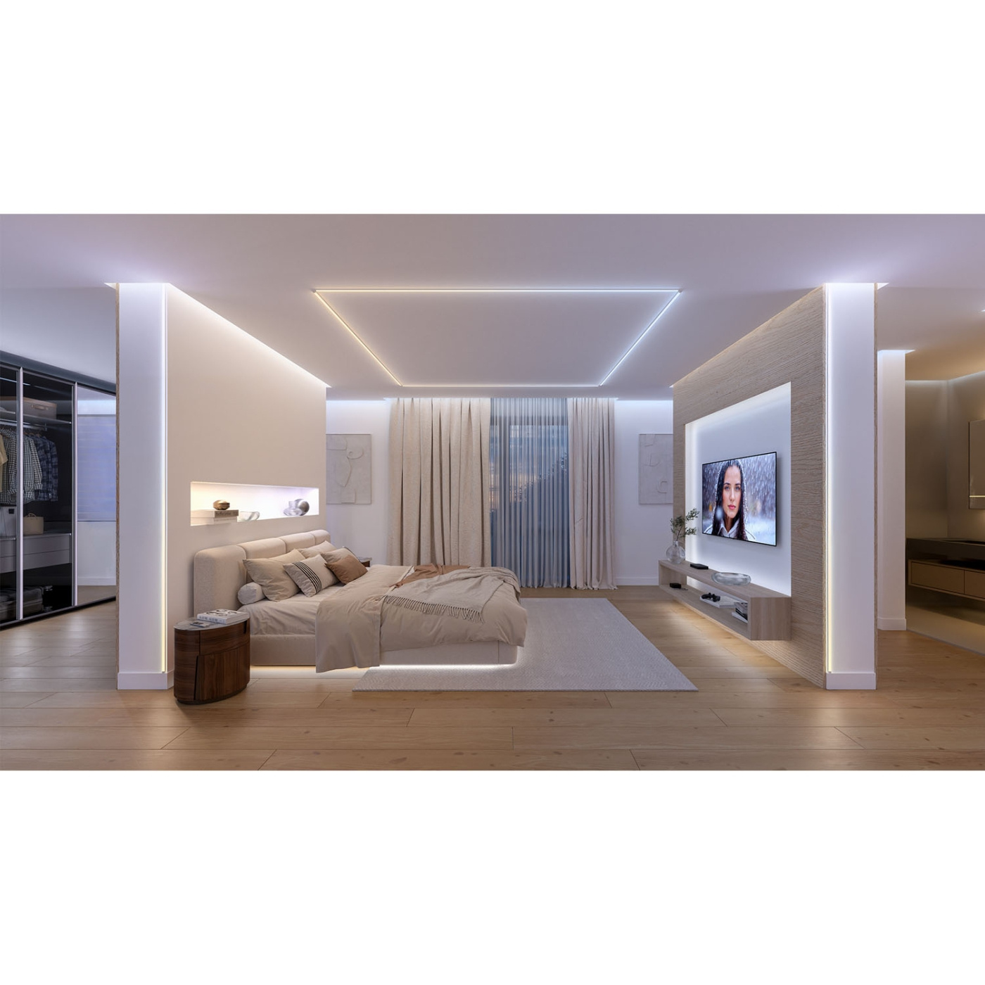 Gör varje hörn lysande med starkt, ultrastarkt och äkta vitt ljus. Dessa LED lister är designade med dedikerade vita och varmvita lysdioder och levererar de renaste och klaraste vita tonerna. Och med en ultraljusstark ljusstyrka på upp till 4500 lumen kan du även njuta av kraftfull väggbelysning eller funktionell belysning, som hjälper dig att fokusera på uppgifter eller fortsätta med dagliga aktiviteter. Få känslan av naturligt dagsljus inomhus med fullspektrumdagsljus. Det bredaste utbudet av vita toner – från varmaste bärnstensfärgade nyanserna i en sommarsolnedgång till svalaste vita nyanserna på en blå vinterhimmel.