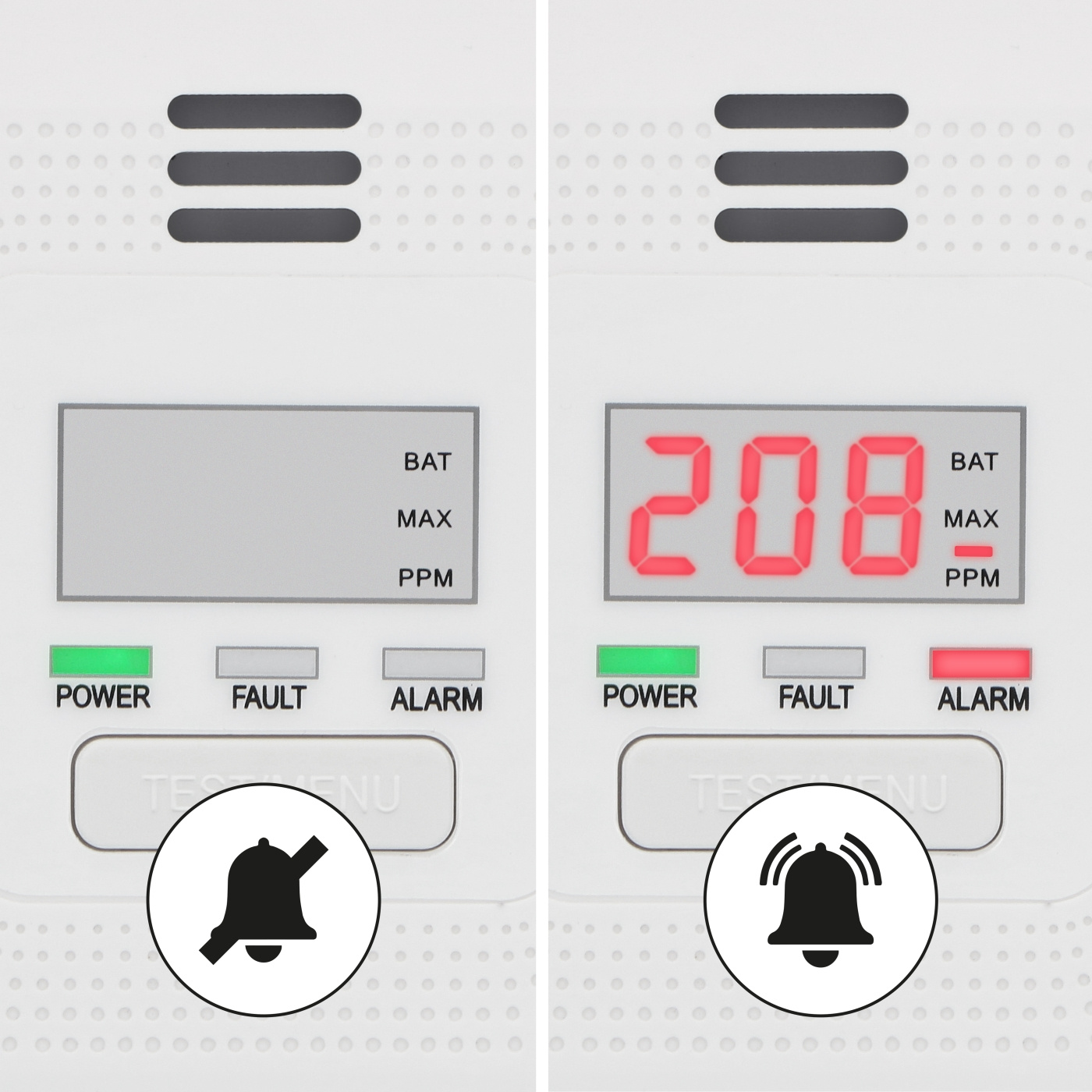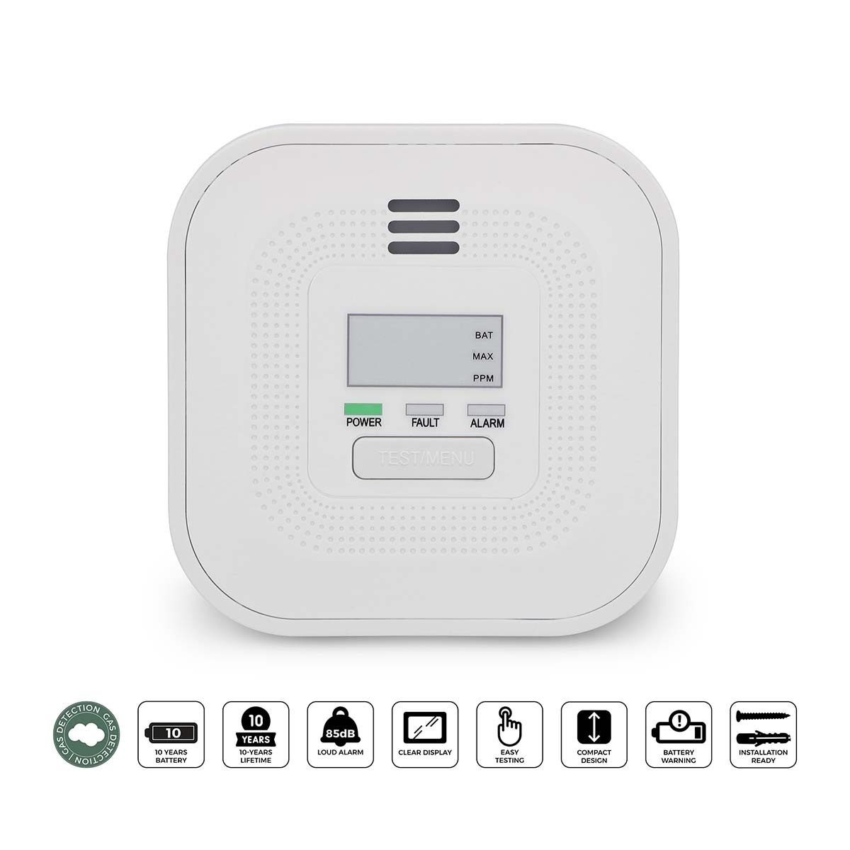 Alecto Hiilimonoksidihälytin, jossa on näyttö ja 10 vuoden pariston ja anturin käyttöaika