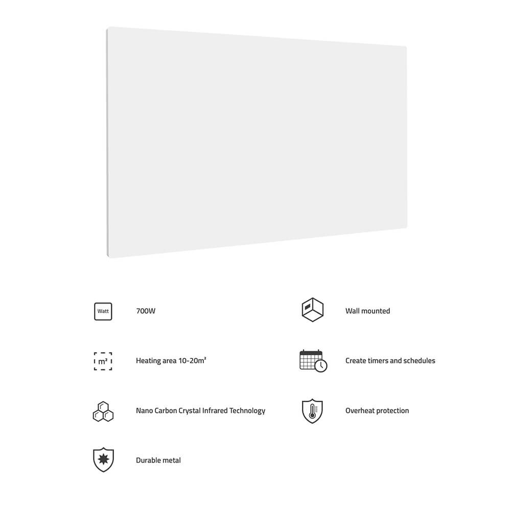 The Smart IR Panel Heater is suitable for any home and family set-up. Thanks to the family-friendly child lock you can safely surround your whole family with the Panel Heater, including your kids and pets. No loose parts laying around and a nano carbon heating element that will last for years. The Smart IR Panel Heater is protected against overheating, making it even more safe to use.