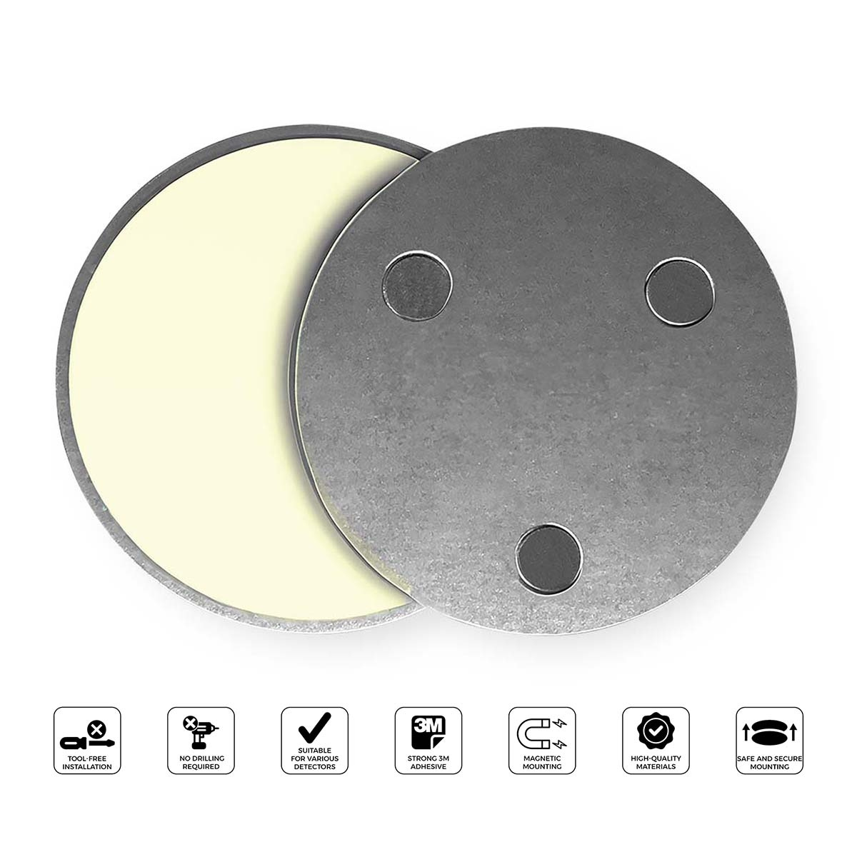 Tämän magneettikiinnityssarjan avulla voit asentaa savu- tai häkäilmaisimen nopeasti ja turvallisesti. Vältät poraamisen ja pidät katot ja seinät ehjinä. Pyöreä muoto sopii useimpiin savu- ja hiilidioksidi-ilmaisimiin.