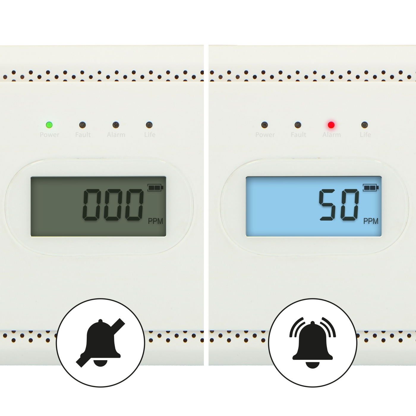 Hiilimonoksidihälyttimet näyttävät hiilimonoksidipitoisuuden ppm:nä. Ppm tarkoittaa parts per million (miljoonasosaa) eli miljoonaan hiukkaseen kuuluvien osien lukumäärää. Laissa edellytetään, että hiilimonoksidihälyttimet hälyttävät 60 minuutin ajan, kun havaittu hiilimonoksidipitoisuus on yli 50 ppm. Jopa nukkuessasi >85 dB:n hälytys ei jää huomaamatta.