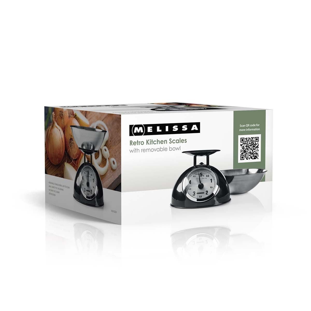 Retro-analoginen mittakello tuo keittiöön nostalgista tunnelmaa ja tarjoaa samalla luotettavan suorituskyvyn. Selkeä mekaaninen näyttö on helppolukuinen ja merkitty 25 gramman askelin, joten se sopii täydellisesti tarkkoihin mittauksiin - mikä on erityisen tärkeää leivonnassa.