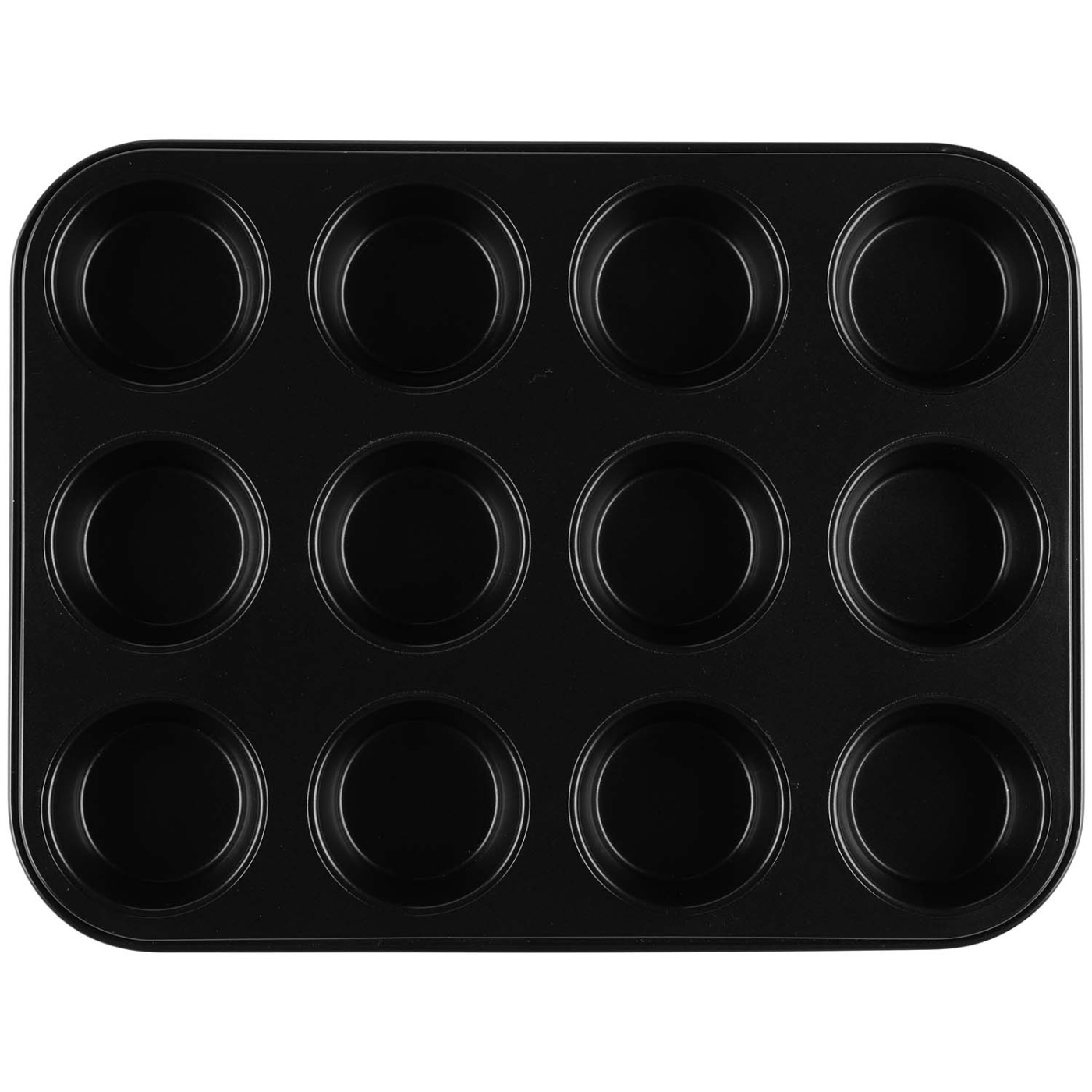 Plåten rymmer 12 muffins med en koppdiameter på 6,5 cm och volym på 85 ml per form. Tillverkad i 0,4 mm tjockt material med non stick-beläggning som gör den enkel att använda och rengöra.