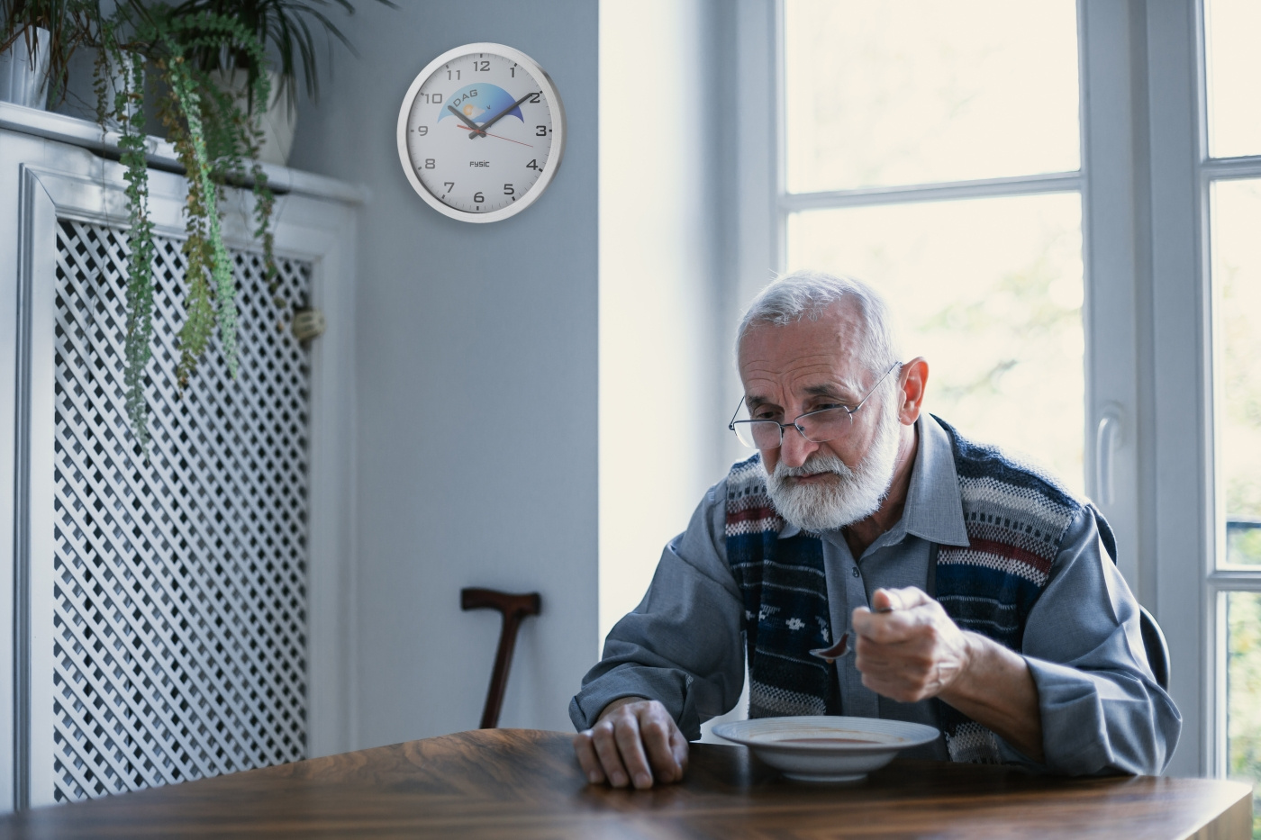 Dementiakello näyttää selvästi eron päivän ja yön välillä näyttämällä erilaisia kuvia. Aamulla kello näyttää lintuja ja nousevan auringon, kun taas illalla näkyvät tähdet ja kuu. Näin on heti selvää, mikä vuorokaudenosa on meneillään. Fysic FK150 -kellossa on alumiinikotelo.
