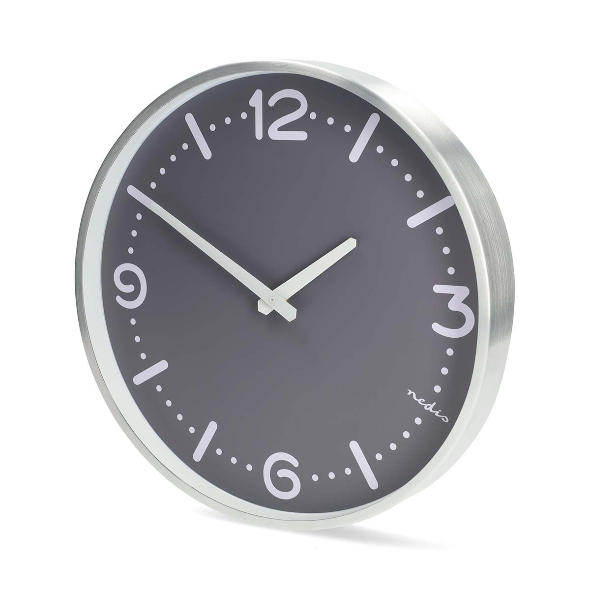 Suuret valkoiset numerot erottuvat selvästi harmaasta kellotaulusta, mikä takaa erinomaisen luettavuuden kaukaa. Kestävästä ruostumattomasta teräksestä valmistettu ja nykyaikaisesti viimeistelty seinäkello sopii saumattomasti moderniin ja ammattimaiseen sisustukseen.