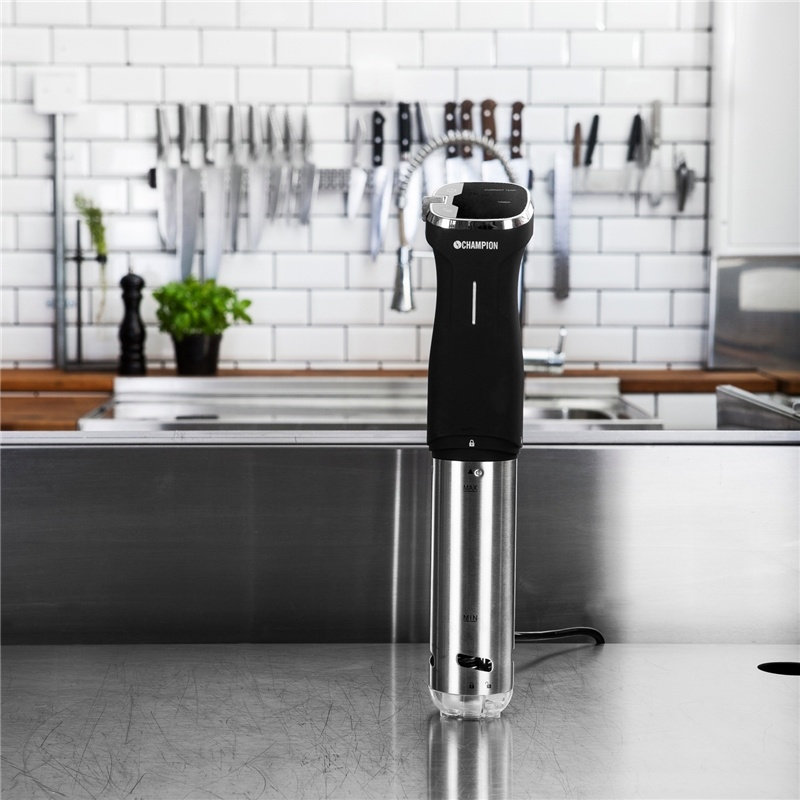Champion Sous Vide -laitteen avulla on helpompaa kuin koskaan valmistaa lihaa, kalaa tai vihanneksia kotona täydellisillä tuloksilla. Joka kerta. Champions Sous Vide kypsentää +/- 0,1C°:n tarkkuudella, jolloin liha on mureaa ja tasaisesti kypsennettyä, eikä vihanneksia ole vaaraa kypsyä liikaa. Samalla ruoan mehevyys, maku ja väri säilyvät. Pakkaa valittu raaka-aine tyhjiöpakkauslaitteella, upota se Sous Vide -lämpötilasäädeltyyn vesihauteeseen ja odota, helpompaa se ei voisi olla. Paista tai grillaa jo valmiiksi täydellisesti temperoitu liha nopeasti erittäin korkealla lämmöllä, jotta se saa kauniin paahteen ennen tarjoilua.