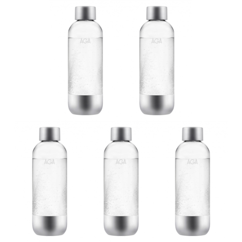 5-pakkaus AGA AQVIA Steel 1L, PET-pullo