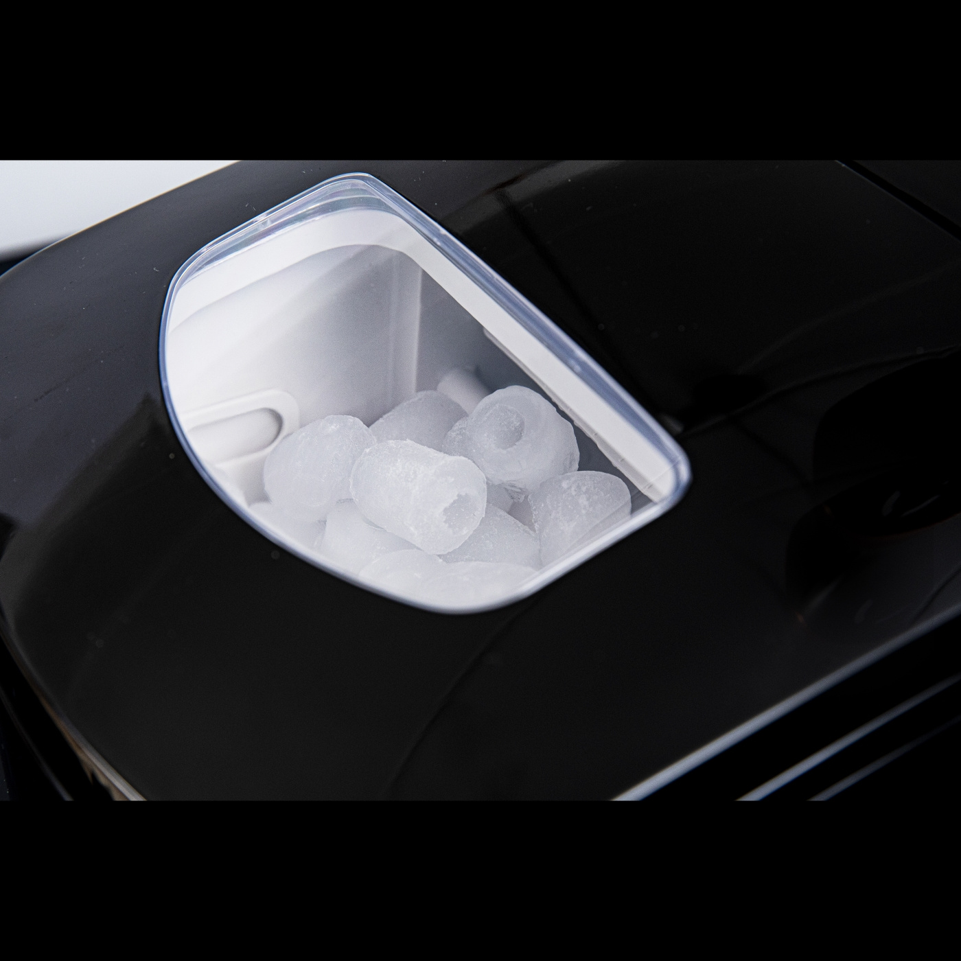 Kone on erittäin käyttäjäystävällinen - täytä säiliö vedellä, valitse haluamasi jääpalakoko yläreunan painikkeilla ja käynnistä kone. Kone sammuu automaattisesti, kun jääsäiliö on täynnä, ja LED-valo ilmoittaa, milloin vettä on täydennettävä.