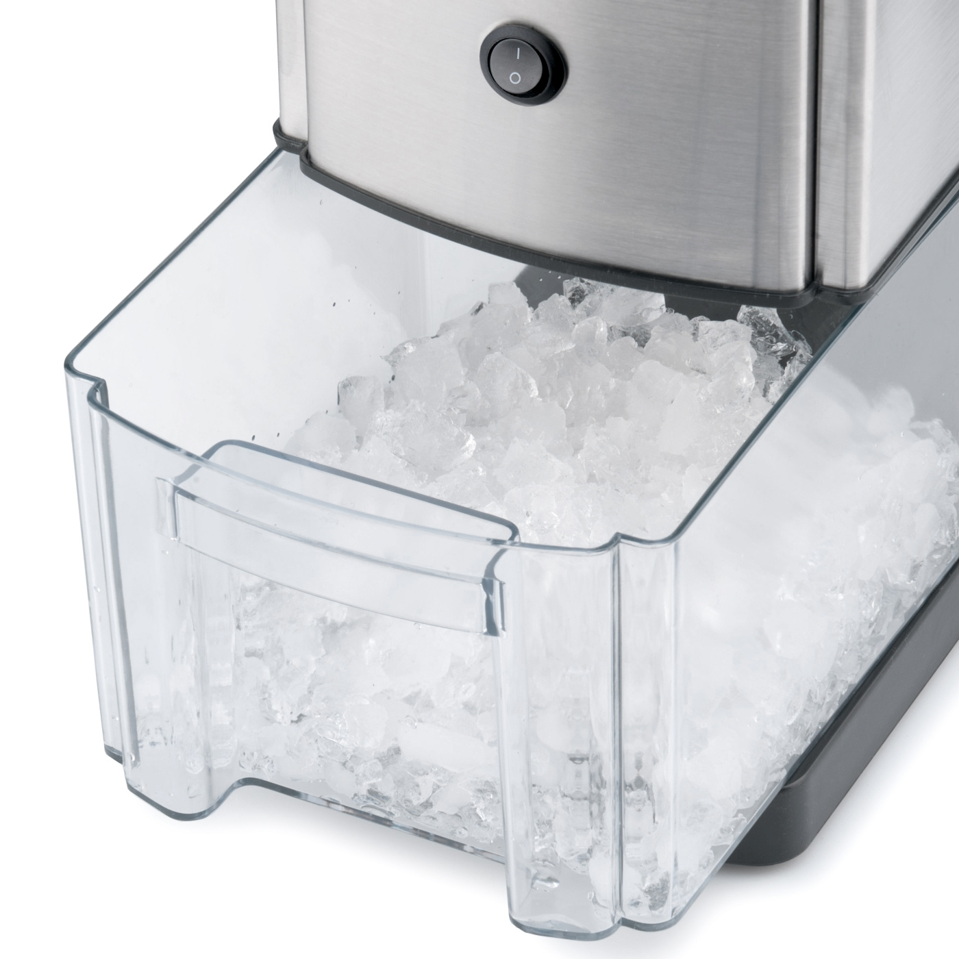 Jäänmurskain murskaa jopa 1 kilogramman jäätä yhdessä minuutissa. Näin voit tarjota murskattua jäätä jokaiseen juomaan myös suuremmissa juhlissa ja kokoontumisissa. Koneen päällä olevan suuren täyttösuppilon ansiosta voit täyttää jääpaloja nopeasti ja helposti uudelleen. 3 litran vetoisuuteen mahtuva laatikko kerää murskatun jään, joten voit käyttää sitä välittömästi virvoitusjuomiin, hedelmiin tai jopa kylmiin kalaruokiin ja jälkiruokiin.