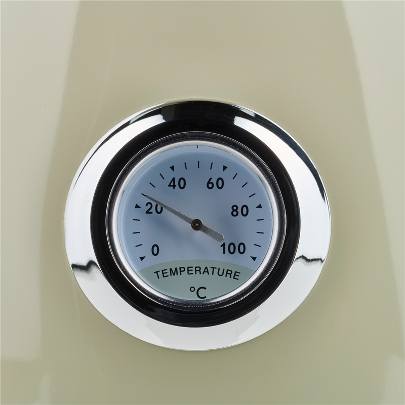 Retrohenkinen Champion CHVK320 on vedenkeitin, joka todella ottaa askeleen eteenpäin perinteisistä vedenkeittimistä ja tarjoaa tyylikästä muotoilua yhdistettynä korkeaan toiminnallisuuteen - yhtä paljon sisustuksen yksityiskohtia kuin vedenkeitin. CHVK320 on kermanvalkoinen ja valmistettu ruostumattomasta teräksestä, ja sen toisella puolella on klassinen analoginen lämpötilanäyttö. CHVK320 on tilava 1,7 litran tilavuudellaan, ja johdottoman rakenteen, kuivakiehumissuojan ja automaattisen sammutuksen ansiosta sitä on sekä helppo että turvallinen käyttää.