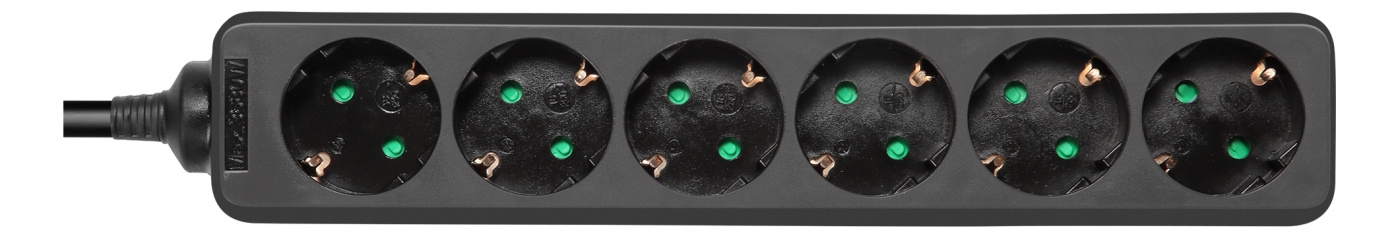 DELTACO maadoitettu jatkojohto, 6 x CEE 7/3, 1 x CEE 7/7, kosketussuoja, 3 m, musta
