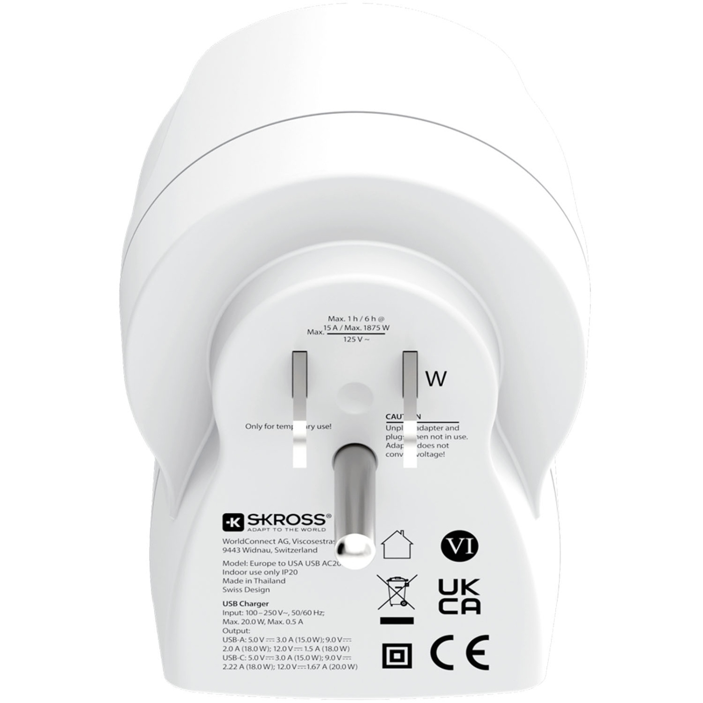 SKROSS Euroopasta Yhdysvaltoihin USB AC20PD