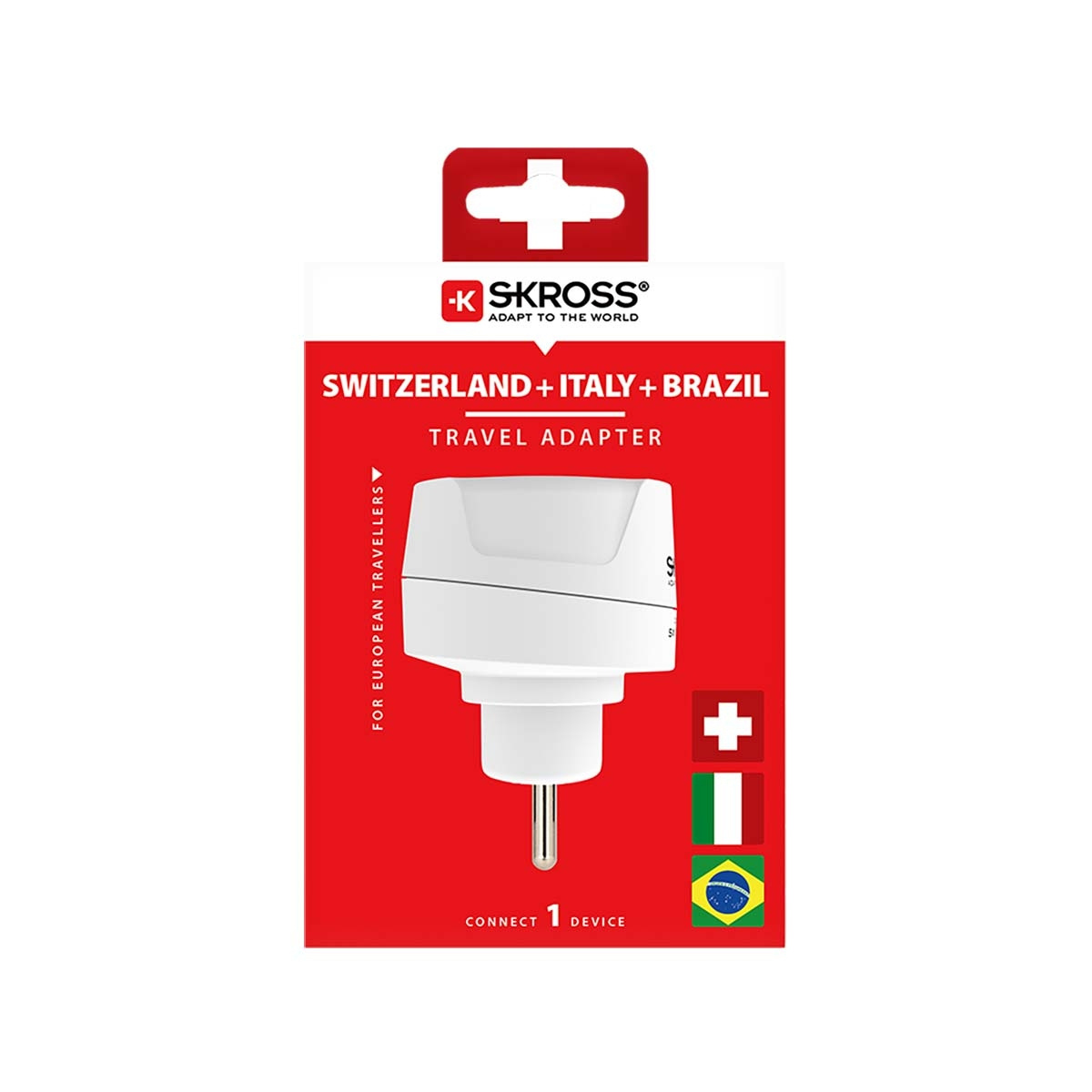 Enheter med jordkontakt eller Euro-kontakter kan anslutas där på ett tillförlitligt och enkelt sätt med reseadaptern Europa till Schweiz + Italien + Brasilien.