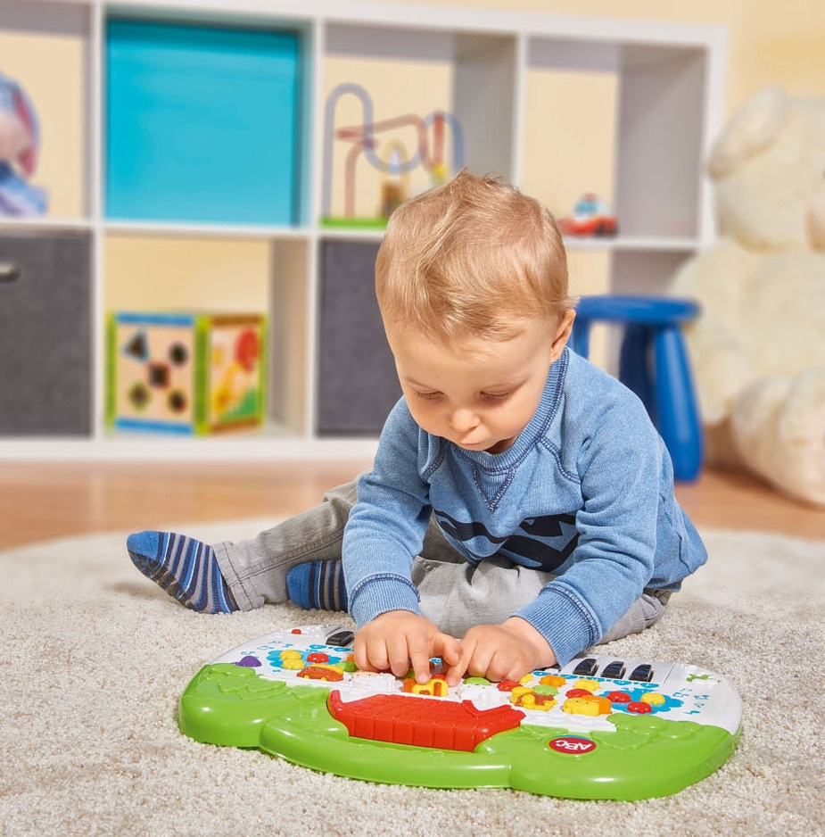 Muodot, värit, numerot, äänet ja melodiat, niihin tutustutaan leikkisästi ABCn kosketinsoittimella! Näppämistä voi valita eri tahdituksia, soittimia tai eläinten ääniä. Valita voi myös haluaako kuunnella valmiita kappaleita, vai soittaa ja äänittää niitä itse. Koko 28 x 39 cm.