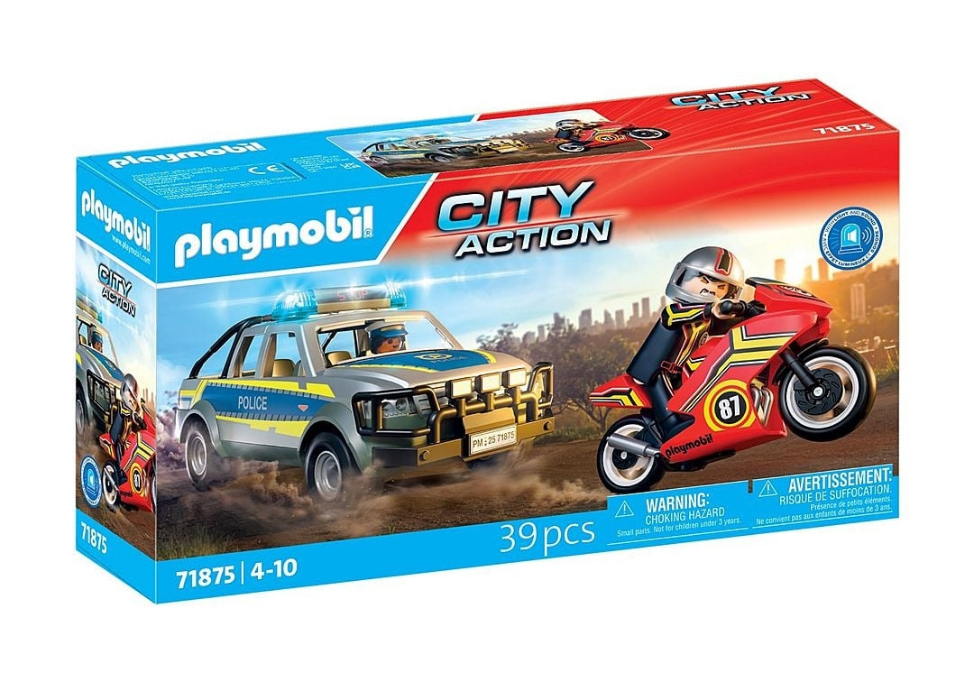 Rikollinen pakenee punaisella moottoripyörällään, mutta naispoliisi on aivan hänen perässään tehokkaalla pick-upillaan. Vilkkuvat valot ja ulvovat sireenit kertovat, että takaa-ajo on käynnissä! Autatko saamaan varkaan kiinni ja tuomaan hänet poliisiasemalle?