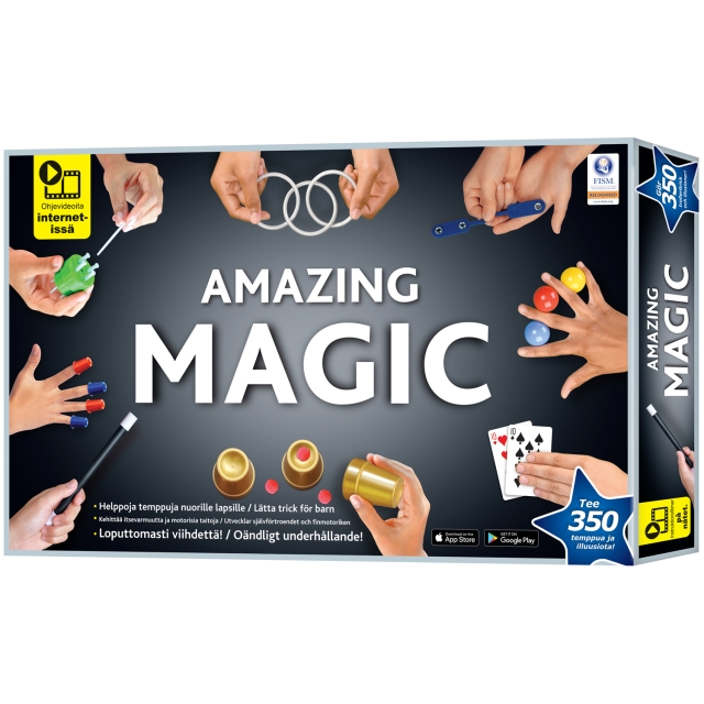Helppoja taikatemppuja nuorillekin lapsille. Temppujen harjoittelu kehittää itseluottamusta ja motorisia taitoja. Upea lajitelma helppoja temppuja selkeillä ohjeilla suomeksi ja ruotsiksi. Hämmästyttäviä taikatemppuja voi oppia jopa minuuteissa. Sisältää välineet ja ohjeet 350 taikatemppuun.