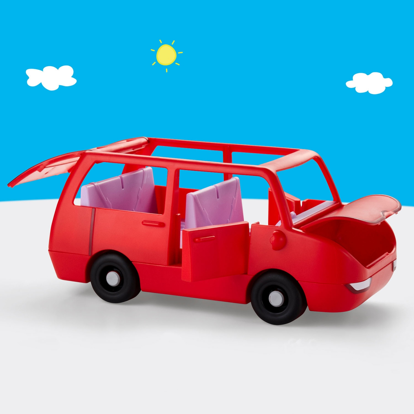 Peppa Pig tarjoaa ihastuttavan leikkisarjan, jossa on iso perheauto mielikuvituksellisia seikkailuja varten.
